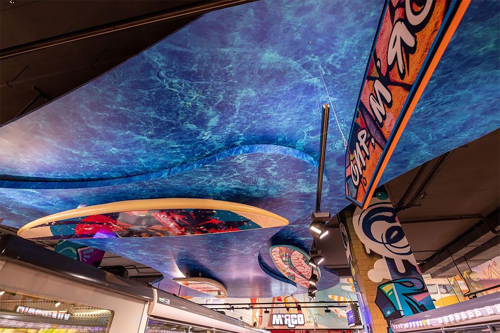 Οι πινακίδες του τμήματος είναι γραμμένες σε γραμματοσειρά παρόμοια με την αυτή του παιχνιδιού και οι θεματικές εικόνες τοποθετούνται στα διάφορα τμήματα. Οι υπεύθυνοι της επιχείρησης ανέφεραν ότι το κατάστημα σε στυλ παραλίας της Βενετίας άνοιξε και μοιράστηκαν φωτογραφίες στο Facebook.