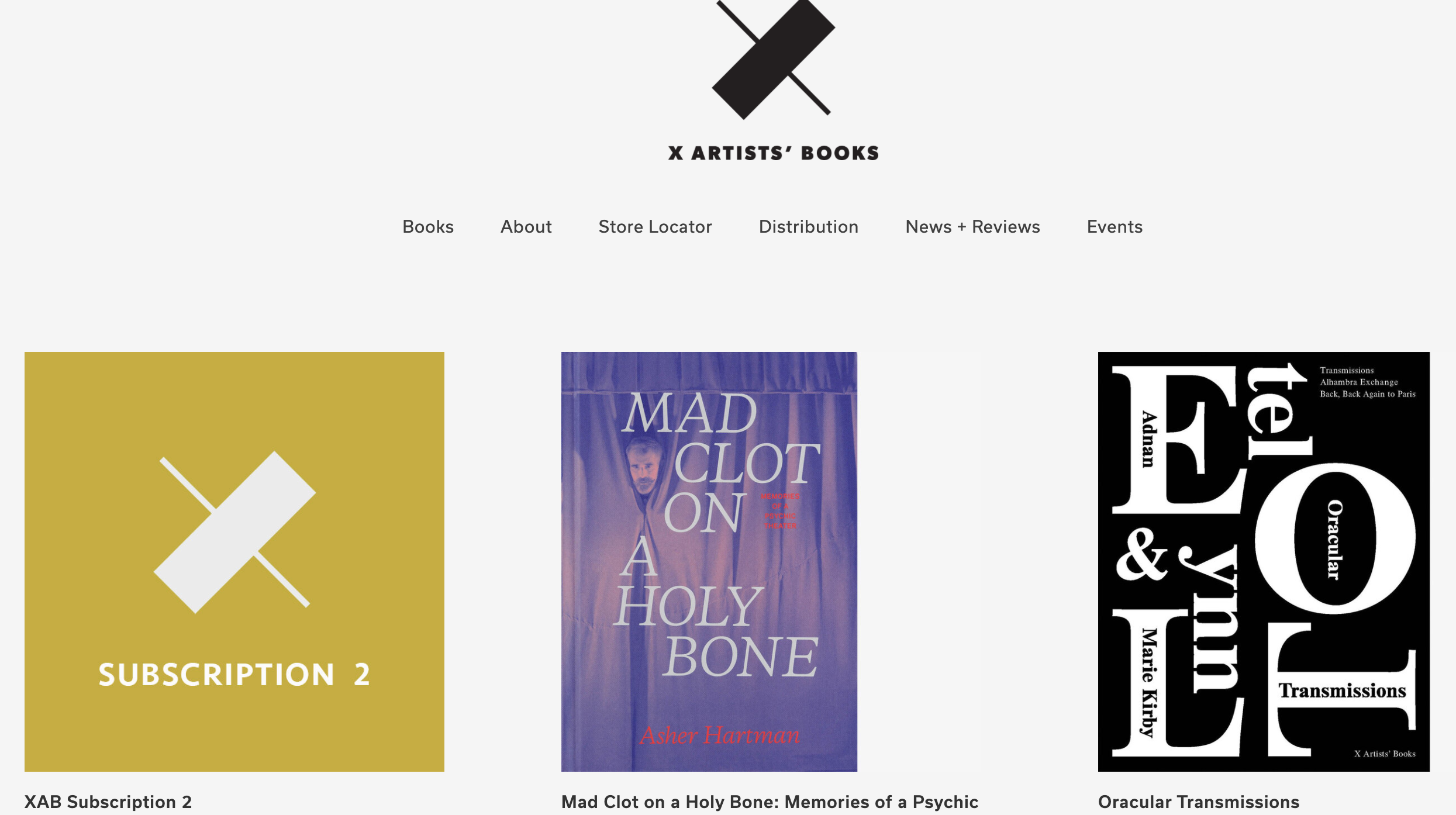 Ανάμεσα στα βιβλία που έχουν μέχρι τώρα κυκλοφορήσεις από τις εκδόσεις X Artists’ είναι το Zeus ένα φωτογραφικό δοκίμιο του Γάλλου φωτογράφου Benoit Fougeirol σε κείμενα του Jean-Christophe Bailly.