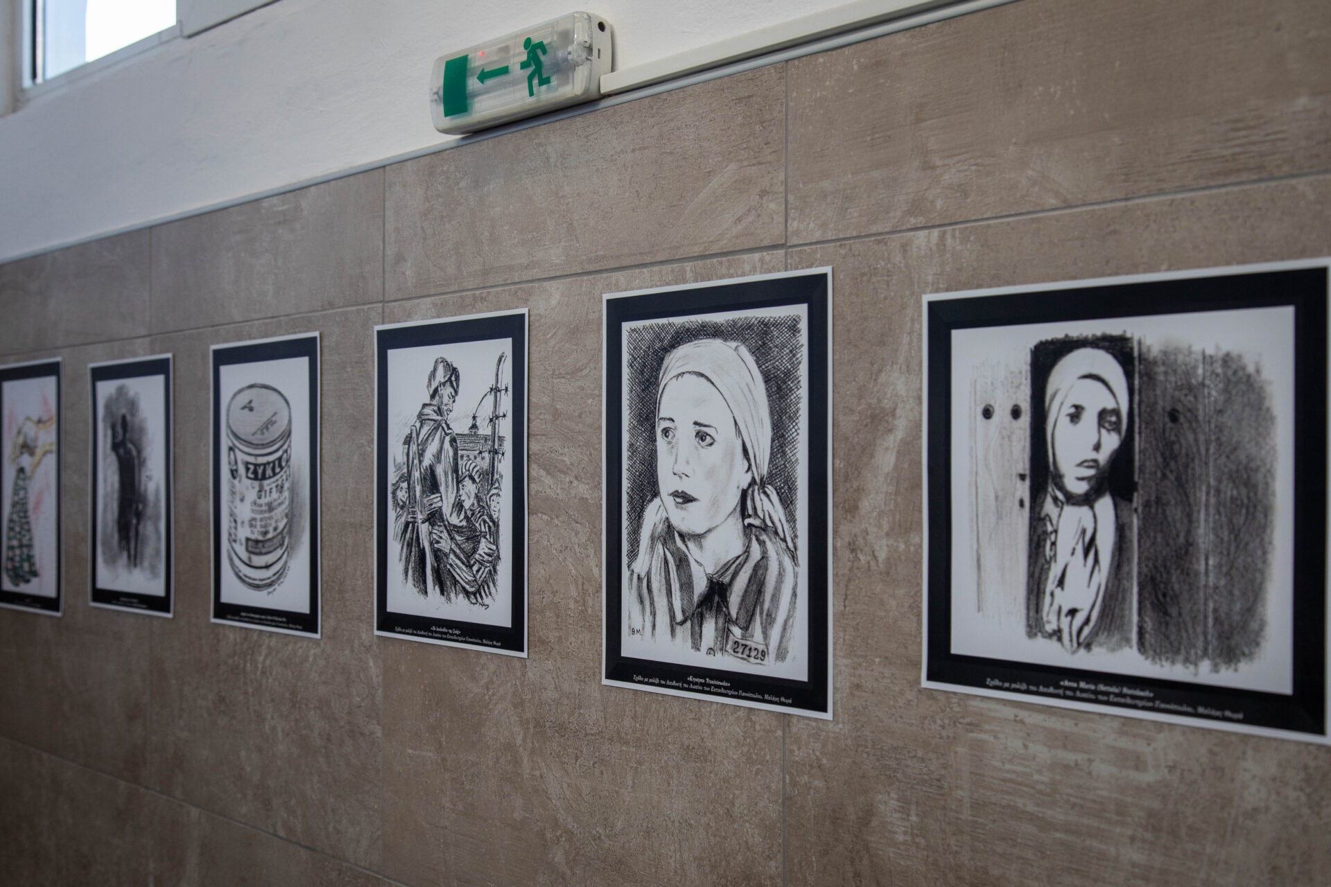 Τα «κλικ», όλα ασπρόμαυρα δείχνουν τους ερειπωμένους πλέον θαλάμους, τους διαδρόμους, τα συρματοπλέγματα που χωρίζουν τη ζωή από τον θάνατο. Στις αίθουσες φιλοξενήθηκε η ζωγραφικής των μαθητών του Lauder Σχολείου της Ισραηλιτικής Κοινότητας Αθηνών, ενώ οι τοίχοι του σχολείου γέμισαν με εικόνες που αποτύπωναν μαθητές και εκπαιδευτικοί του σχολείου, τις σκέψεις τους, τη λύπη, την οργή τους για τον πόλεμο, τα βασανιστήρια αθώων ανθρώπων, το πρόσωπο του ναζισμού.