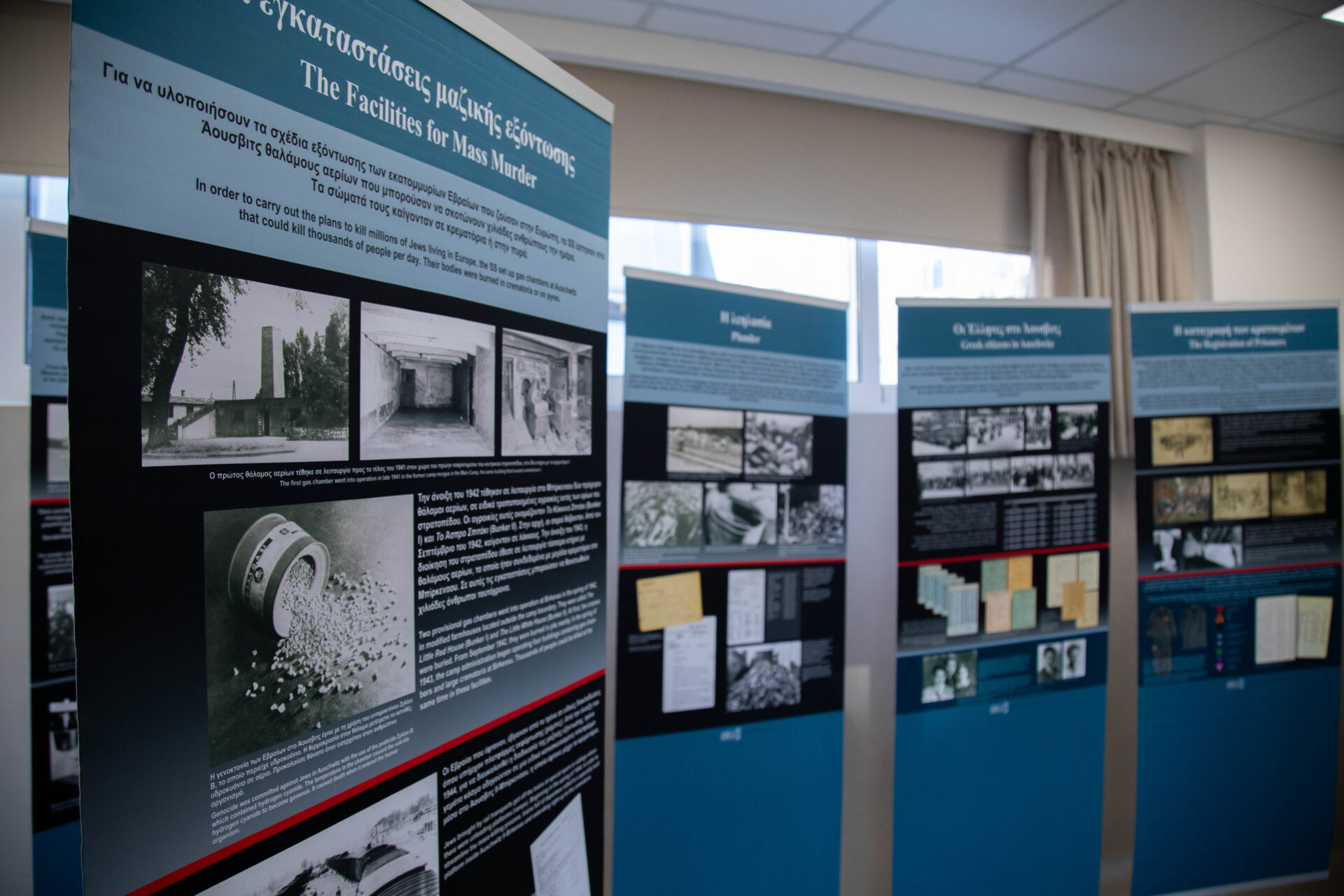 Στο πλαίσιο της εκδήλωσης του σχολείου οι μαθητές ξενάγησαν τους επισκέπτες στην έκθεση της Πολωνικής Πρεσβείας με θέμα το Άουσβιτς όπου παρουσιάστηκε αρχειακό, φωτογραφικό υλικό, πληροφορίες και στοιχεία από τη μαρτυρική ζωή των ανθρώπων που έζησαν την φρίκη στο στρατόπεδο συγκέντρωσης, μαρτυρίες Εβραίων που άφησαν την ελπίδα έξω από το Άουσβιτς.