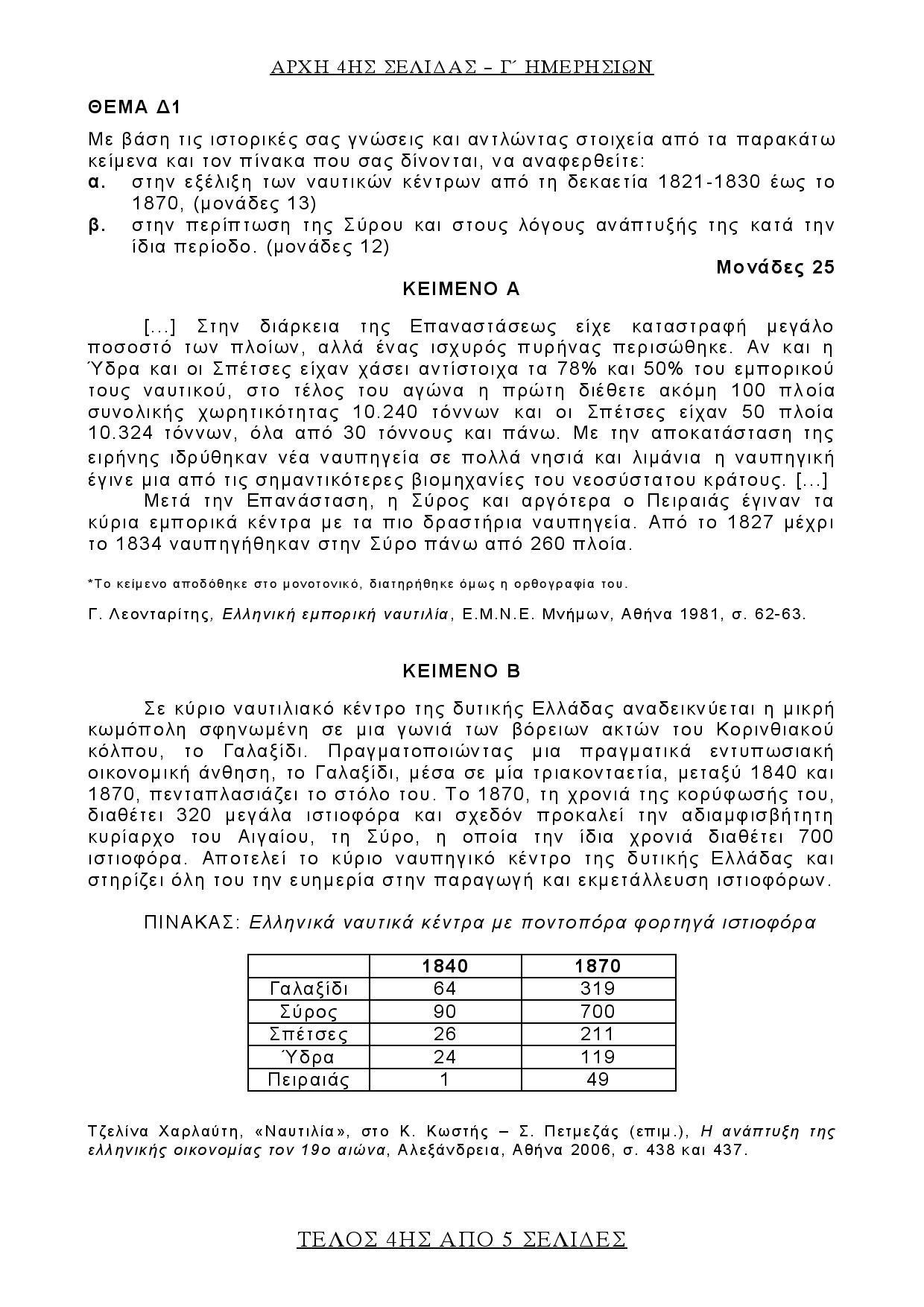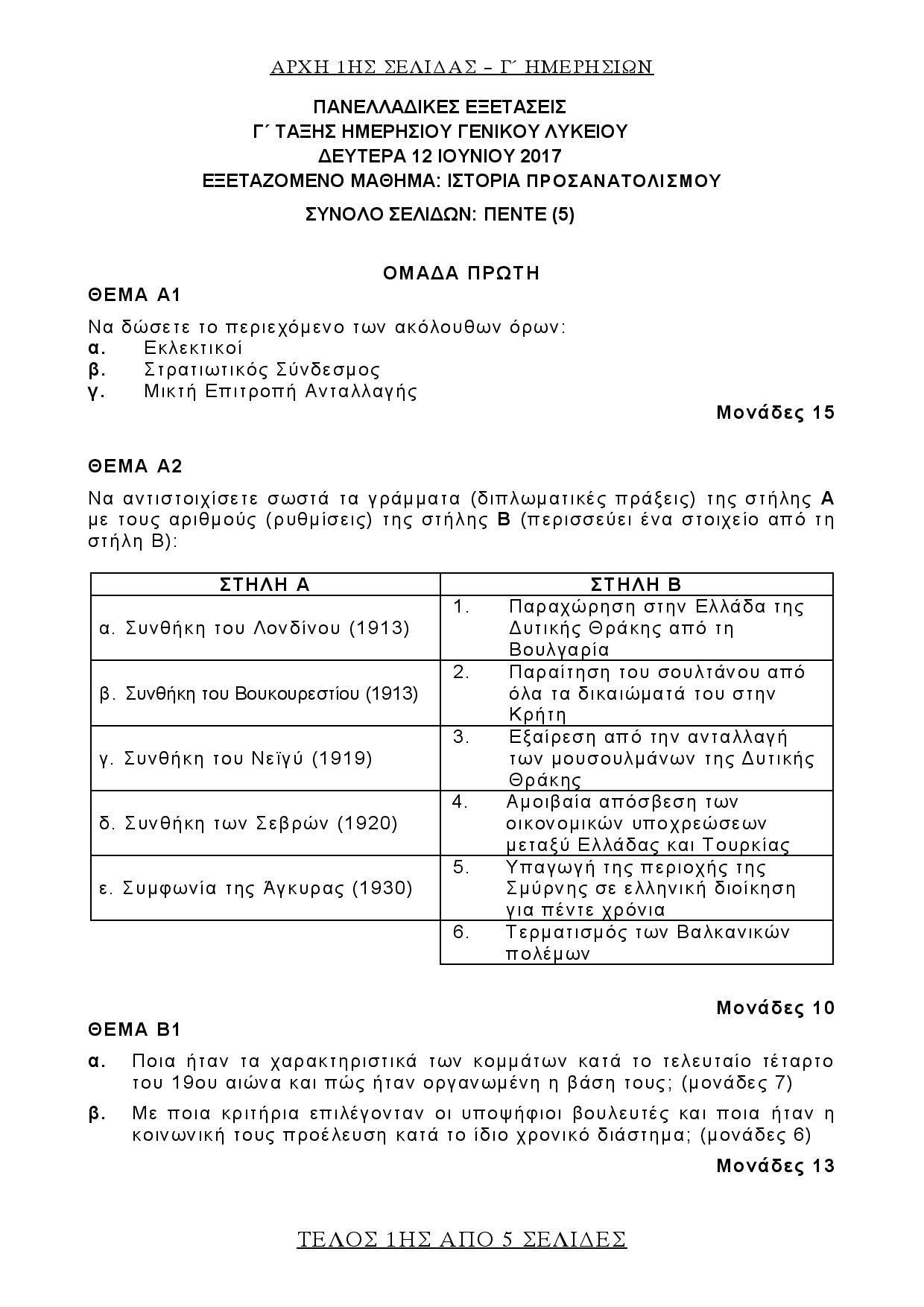 Ακολουθούν τα θέματα της Ιστορίας Προσανατολισμού των Γενικών Λυκείων