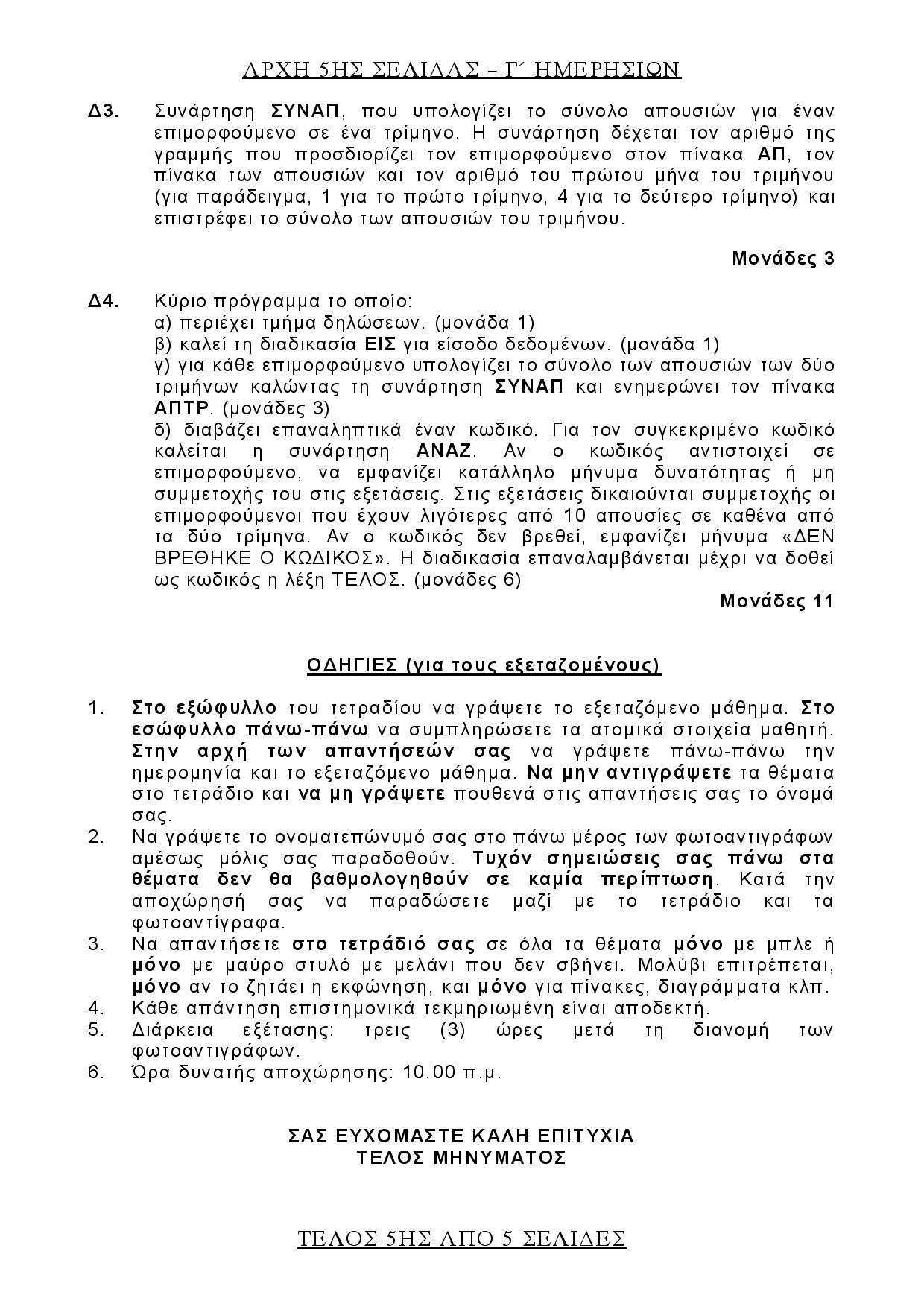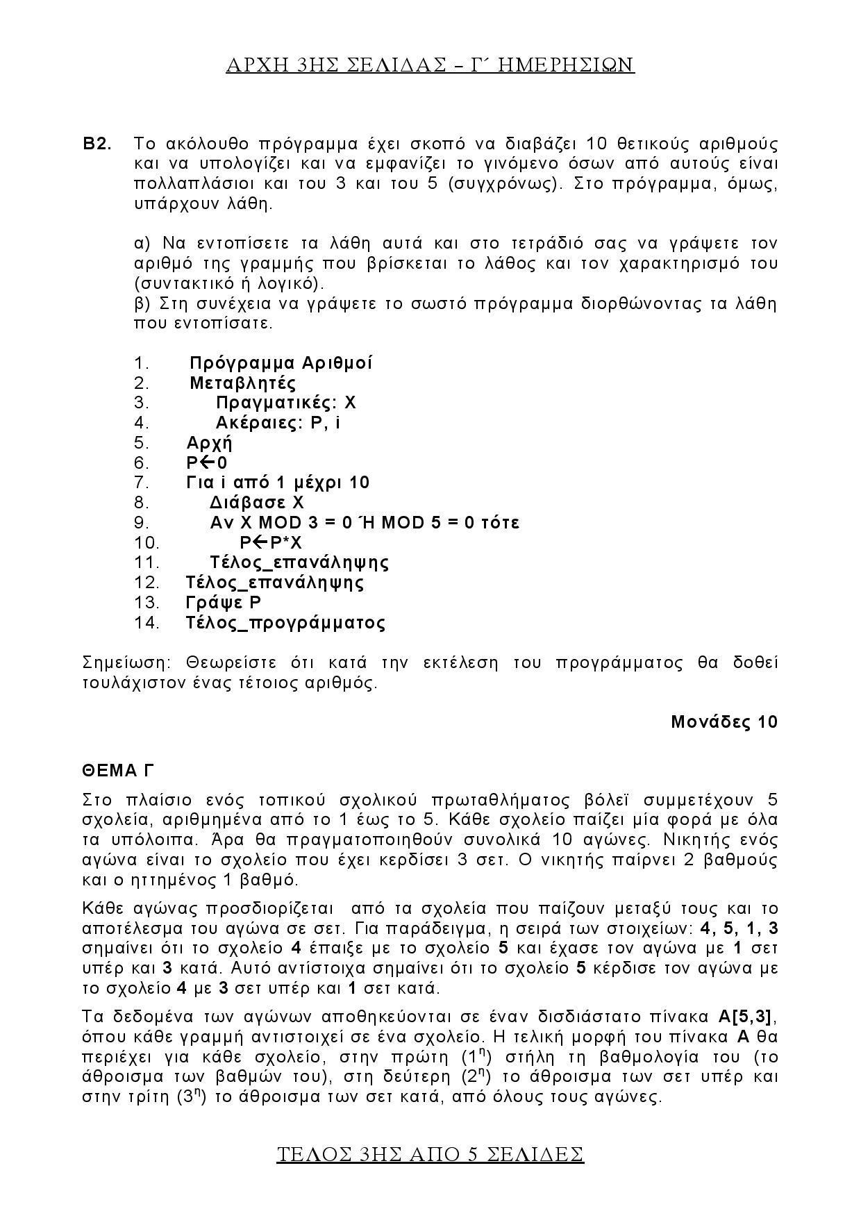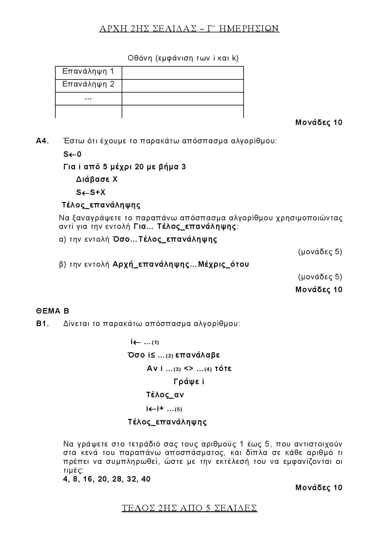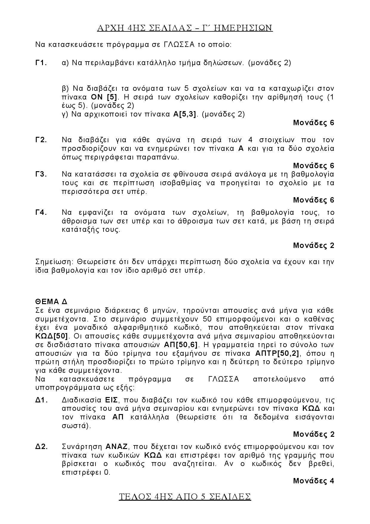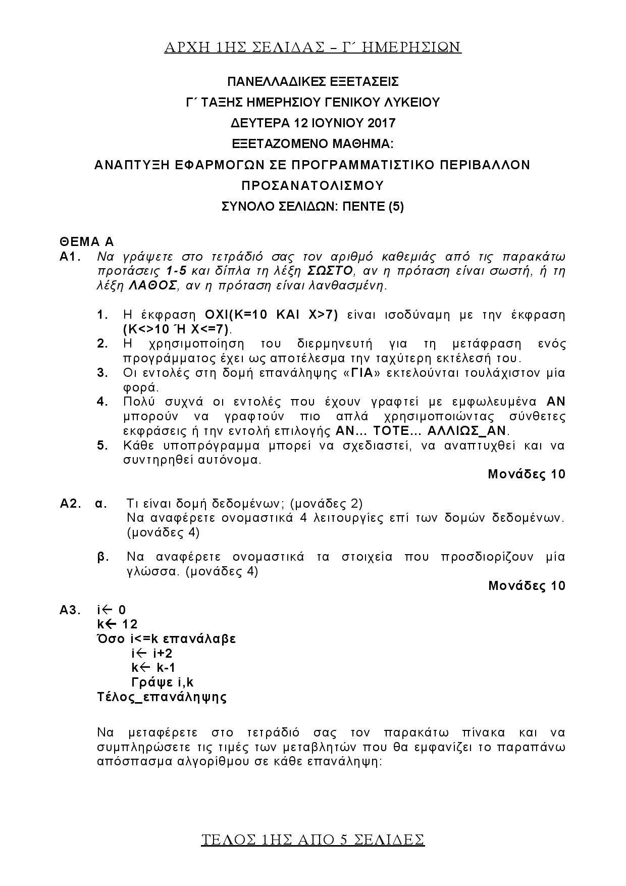Για τα θέματα στην Ανάπτυξη Εφαρμογών σε Προγραμματιστικό Περιβάλλον των ημερησίων ΓΕΛ πατήστε εδώ.
