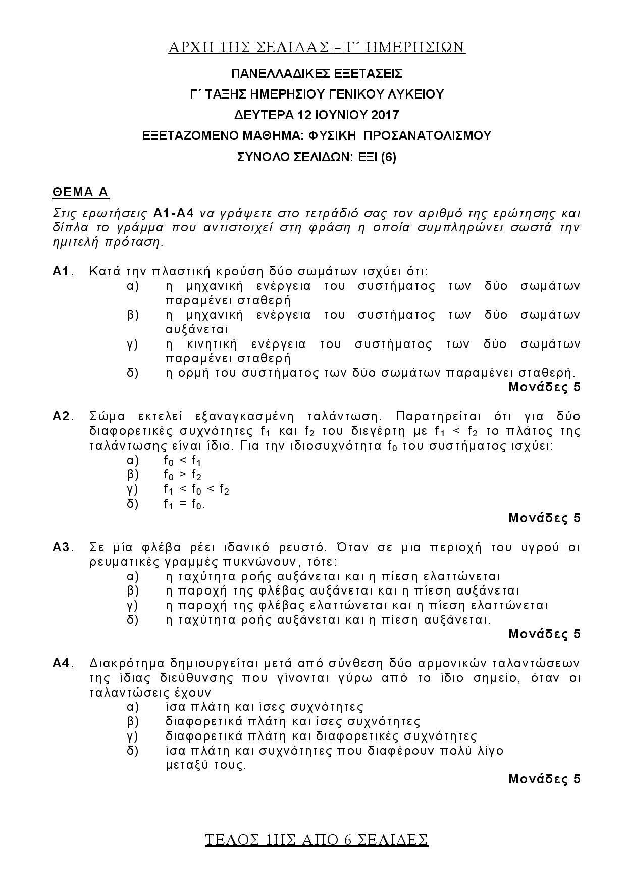 Για τα θέματα στην Φυσική των Πανελλαδικών Εξετάσεων 2017 των ημερησίων ΓΕΛ πατήστε εδώ.