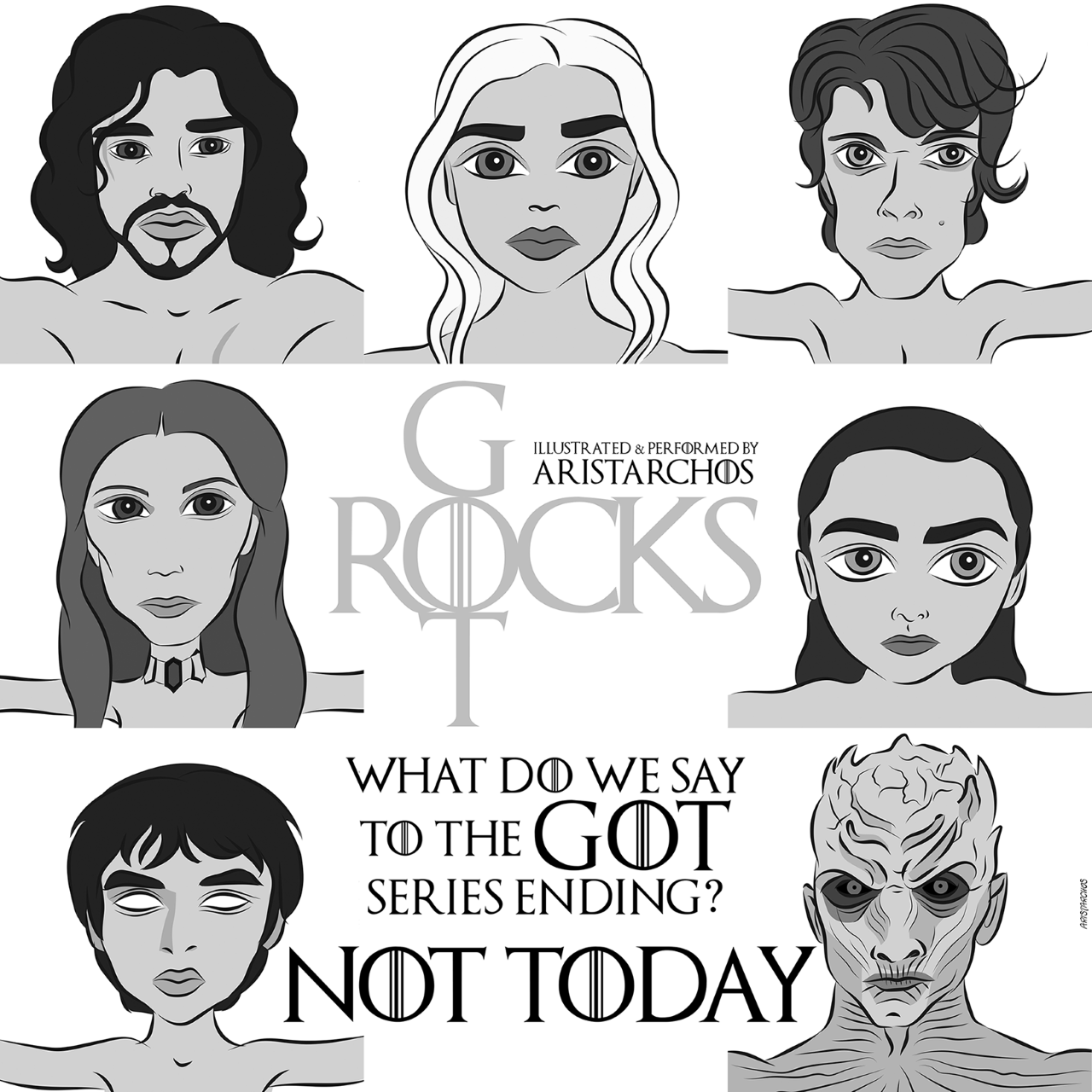 Στο “GoT Rocks” οι στίχοι είναι του Τζορτζ Ρ. Ρ. Μάρτιν, η μουσική, η ερμηνεία και οι καρικατούρες του Αρίσταρχου Παπαδανιήλ (Syllipsis) σε μπάσο-ηχοληψία-μίξη: του Θοδωρή Ζευκιλή (SCA studios).