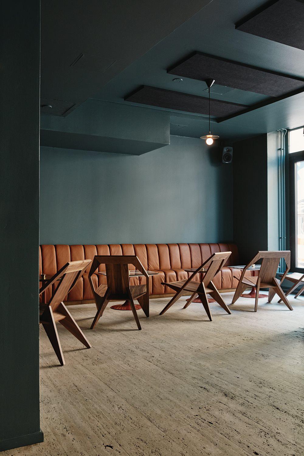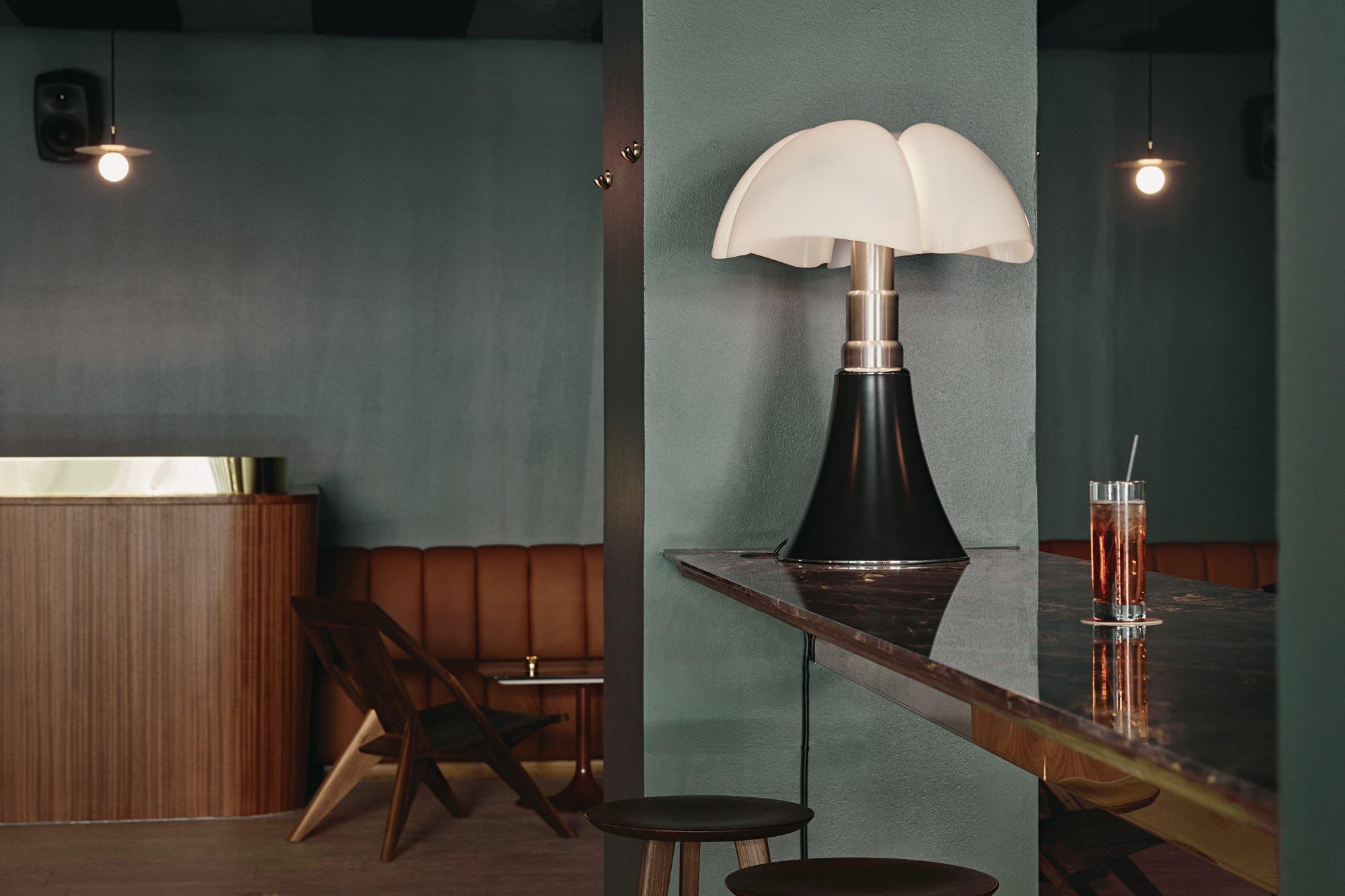 Το επιτραπέζιο φωτιστικό Pipistrello, που σχεδίασε το 1965 ο Ιταλός Gae Aulenti, ενισχύει αυτήν την εντύπωση» προσθέτει. DJs παίζουν συχνά σε αυτό το μπαρ. Κατά συνέπεια, το σημείο όπου είναι τα deck σχεδιάστηκε να είναι το μικρό «αδερφάκι» του πάγκου του μπαρ. Τα τραπέζια με τη μαρμάρινη επιφάνεια που σχεδίασε η Laajisto, δένουν με τα από ξύλο καρυδιάς καθίσματα που έχει σχεδιάσει για τον οίκο Matiazzi ο Konstantin Grcic. Η σχεδίαση του εσωτερικού αυτού του νοσταλγικού μπαρ ταιριάζει με την τοποθεσία του. Η συνοικία Punavuori είναι γνωστή ως η συνοικία ντιζάιν του Ελσίνκι, της πρωτεύουσας μια χώρας που είναι φημισμένη για τις επιδόσεις της στο ντιζάιν. Ένα πολύ ατμοσφαιρικό μπαρ, ομολογουμένως. Δίνει, στον επισκέπτη, την ψευδαίσθηση ότι όπου να ‘ναι θα παίξει σε ταινία της Cinecitta του ’70.