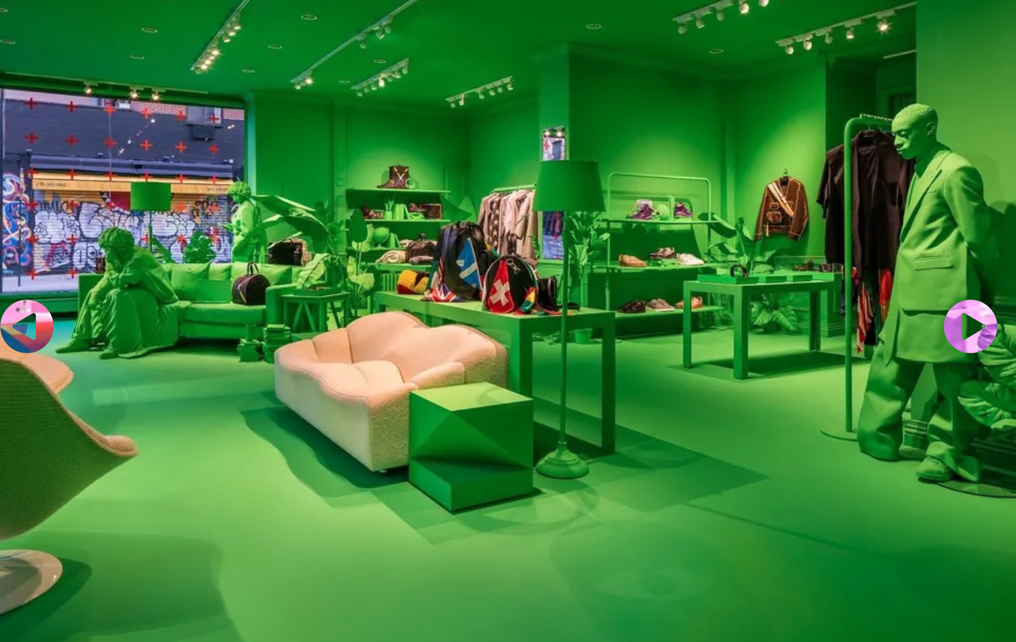 Αυτόν τον Ιούλιο, ο οίκος Louis Vuitton εορτάζει την ανδρική κολεξιόν Φθινόπωρο-Χειμώνας 2019 την οποία σχεδίασε ο Βίρτζιλ Άμπλο (Virgil Abloh) με ένα προσωρινής διάρκειας κατάστημα στη Νέα Υόρκη. Το pop-up κατάστημα στην οδό Rivington – εγκαινιάστηκε με το επίσημο hasthag #LVGreenscreen – ήταν λουσμένο σε νέον πράσινο χρώμα.