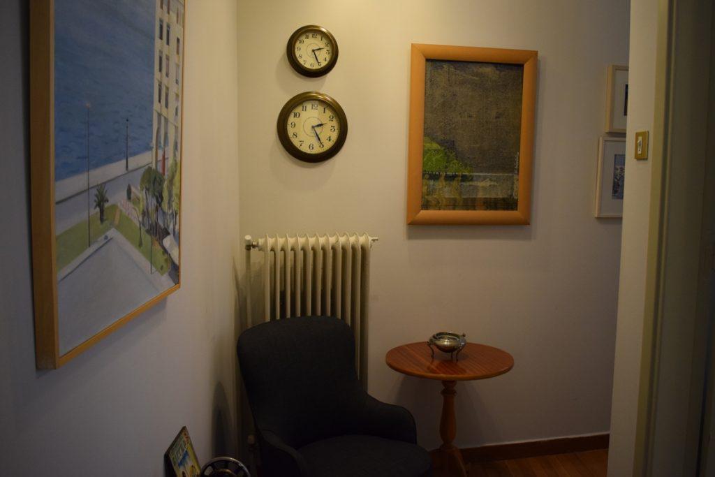 Πρόκειται για το διαμέρισμα στον τελευταίο όροφο πάνω από το Ολύμπιον, που διατηρεί την αρχική του διαρρύθμιση κι επίπλωση και λειτουργεί πλέον ως δικηγορικό γραφείο.