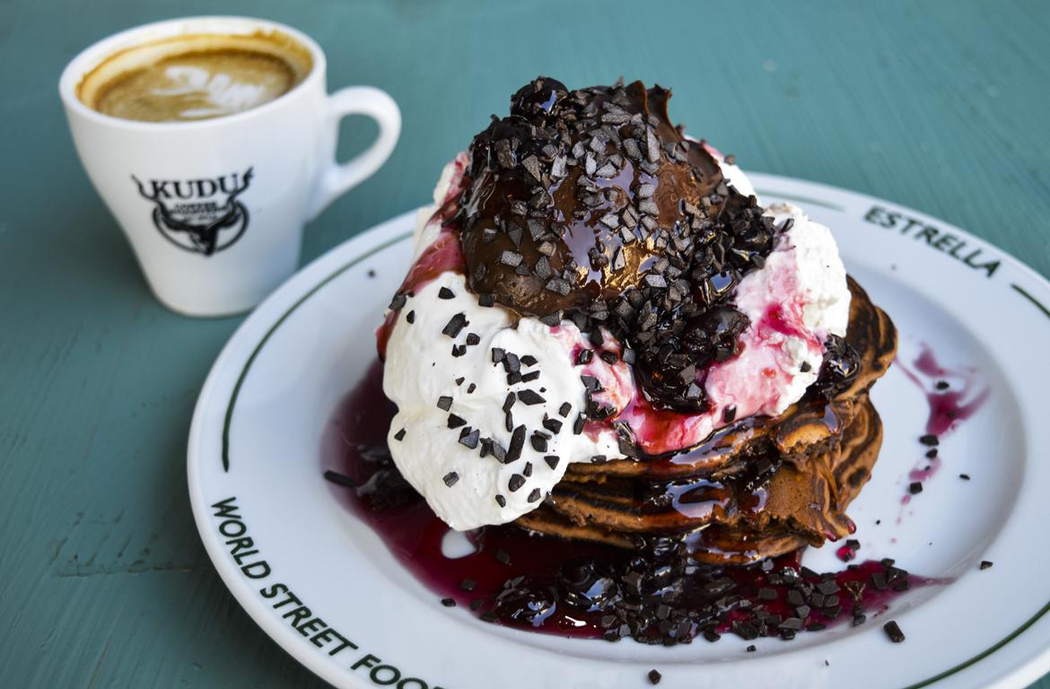 Ένα pancake black forest προσγειώνεται μπροστά μας, ένας κολασμένος πειρασμός, big hit στην Estrella, ένα πειραγμένο burger που η ιδέα του ξεκίνησε στο μαγαζί της Κύπρου αφού είναι φτιαγμένο με τη λογική της σεφταλιάς με σκέπη και χαλούμι και συνοδεύεται από λάχανο τουρσί, η σαλάτα της φακής με τις πιπερίτσες, το αυγό στην κορυφή και το κατσικίσιο τυρί και βέβαια το φετινό σουξέ, το mega hero με το παγωτό και ένα σύννεφο ροζ μαλλιού της γριάς στην οροφή να σε γυρίζει στα παιδικά σου χρόνια!