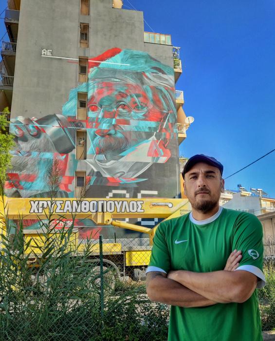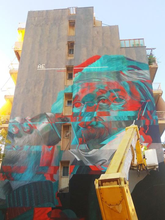 Ο διάσημος καλλιτέχνης της street art, Asier, ο οποίος ταξίδεψε από την Ισπανία, εργαζόταν στον τοίχο με πυρετώδεις ρυθμούς μία ολόκληρη εβδομάδα, για να δημιουργήσει στον αστικό ιστό της Πάτρας μία ακόμα Ξεχωριστή, μεγάλου μεγέθους, θεματική τοιχογραφία. Στον τοίχο της πολυκατοικίας στην οδό Μιχ. Ψελλού 4 στην Πάτρα, βρίσκεται πλέον ο Albert Einstein.