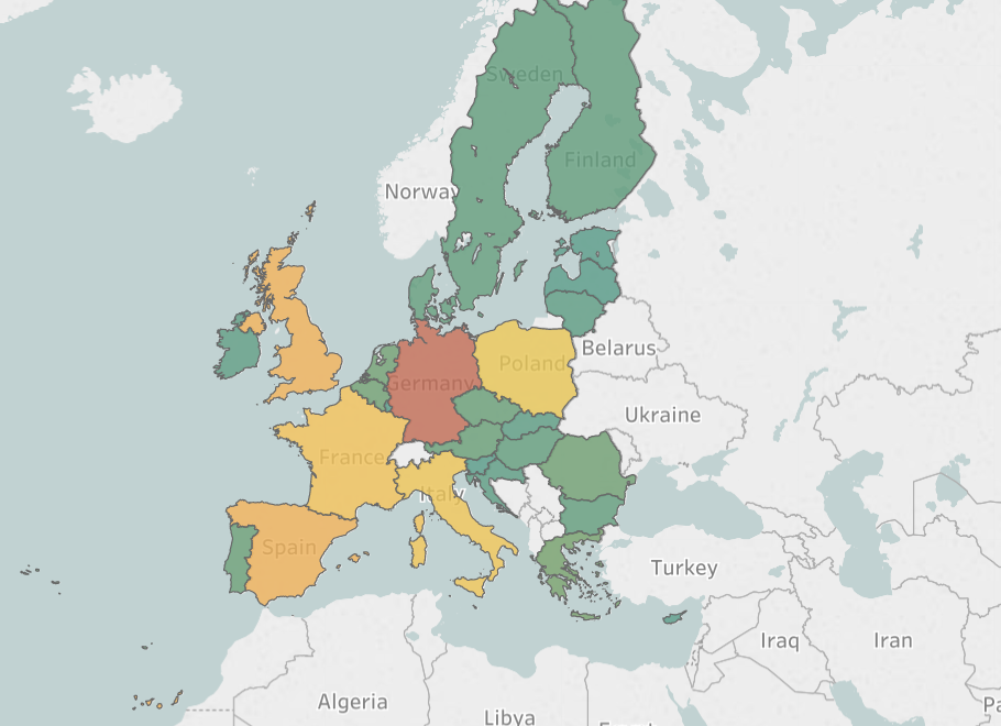 Ένας χάρτης δείχνει που είναι καθαρός ο αέρας στην Ευρώπη