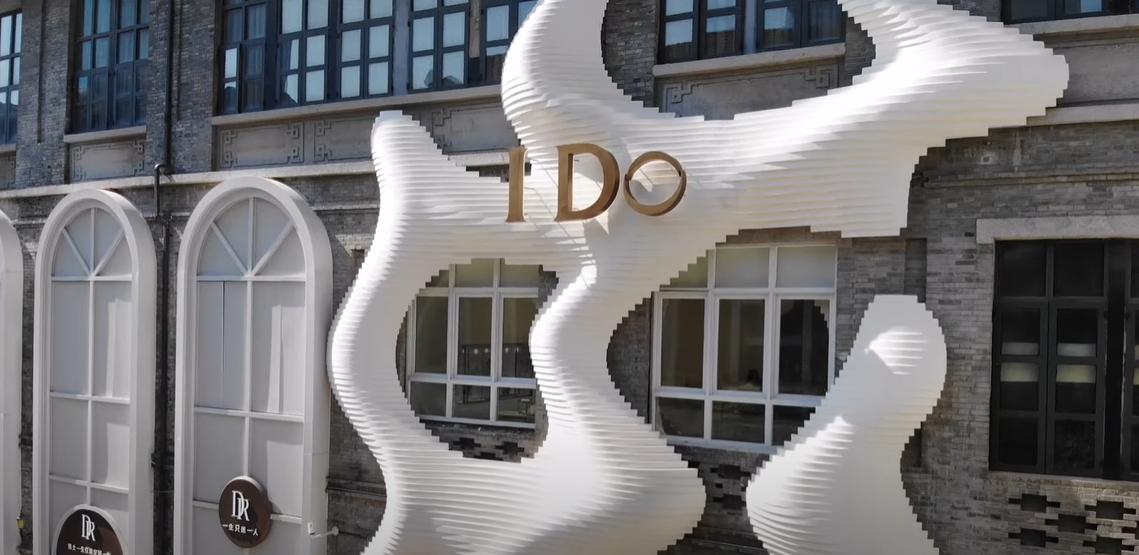 Με τον Κινέζο καλλιτέχνη Yue Minjun συνεργάστηκε το γραφείο Antistatics Architecture για να ολοκληρώσουν ένα καινούργιο κατάστημα «I DO» στη Wuhan. Και ένας γιγαντιαίος ελέφαντας από πλέγμα, δημιουργημένος σε τρισδιάστατο εκτυπωτή, ξεπροβάλλει από την είσοδο του καταστήματος.