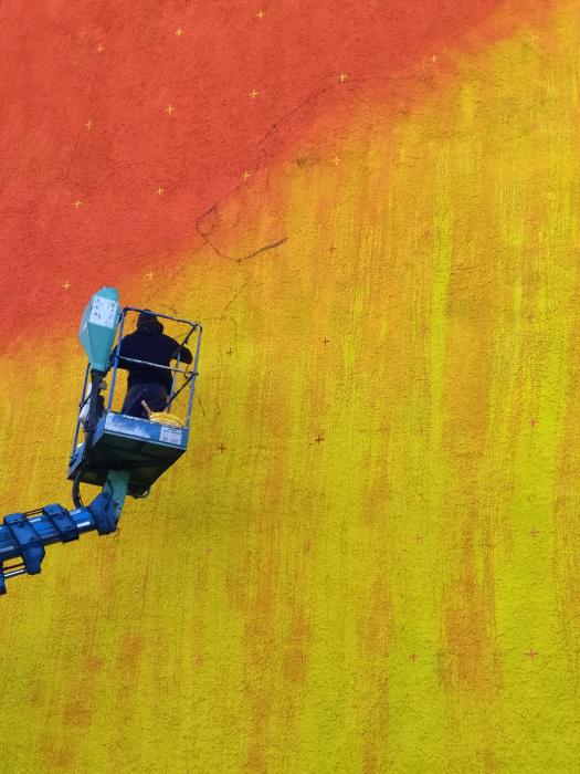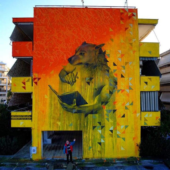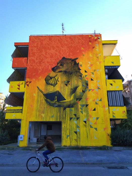 Η εν λόγω τοιχογραφία υλοποιήθηκε από τον Ιταλό καλλιτέχνη Mattia Campo Dall’Orto, σε κτίριο έναντι του παλιού εργοστασίου “Οινοπνεύματος”.
