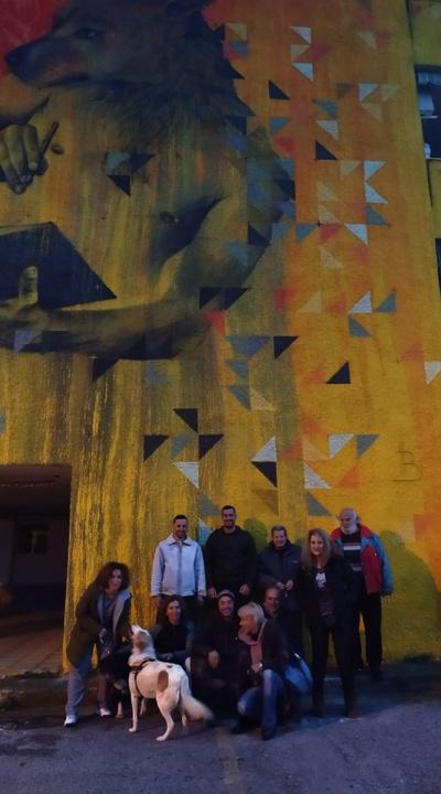 Στα εγκαίνια της τοιχογραφίας συμμετείχαν οι κάτοικοι της περιοχής, ο καλλιτέχνης, εκπρόσωποι της UrbanAct και η Φιλοζωική Ομάδα Βόλου, οι οποίοι με την παρουσία τους ευχαρίστησαν τον καλλιτέχνη για το έργο του.