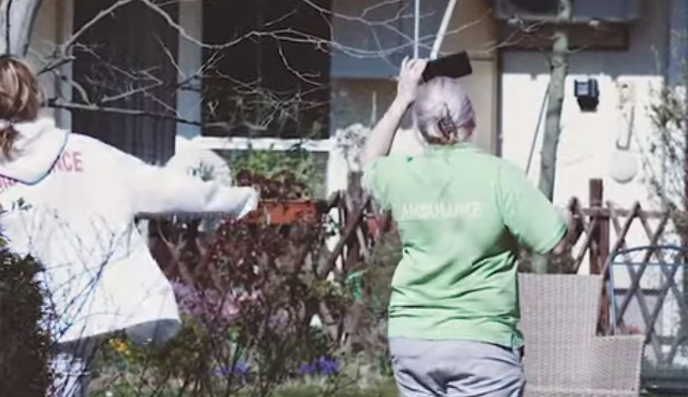 Κάτω στον κήπο, νοσηλεύτριες με μάσκες χόρευαν στον ρυθμό του βαλς.