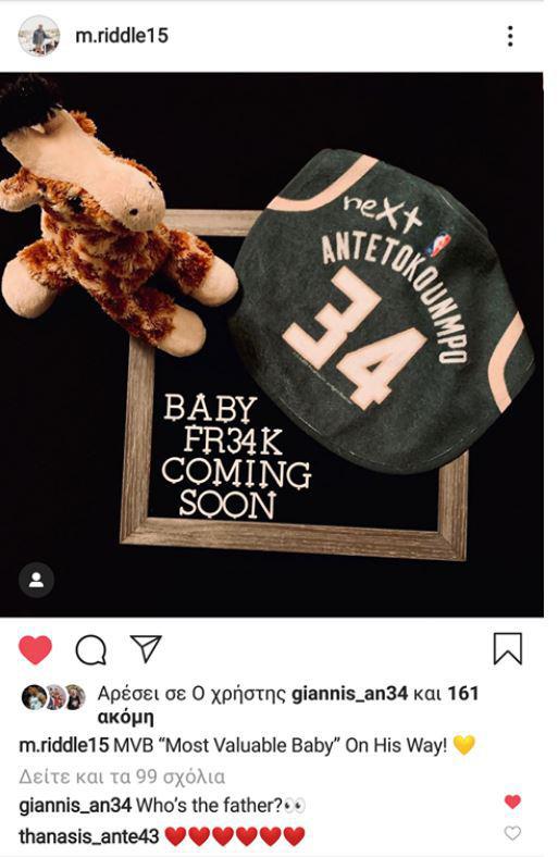 Αφού μετά την περσινή μαγική χρόνια στο NBA και την κατάκτηση του τίτλου του MVP, ο Γιάννης Αντετοκούμπο έχει έναν τρυφερό λόγο να είναι πλέον λίγο παραπάνω χαρούμενος. Καθώς η κοπέλα του είναι έγκυος και θα τον κάνει πατέρα για πρώτη φορά στα 25 του χρόνια.