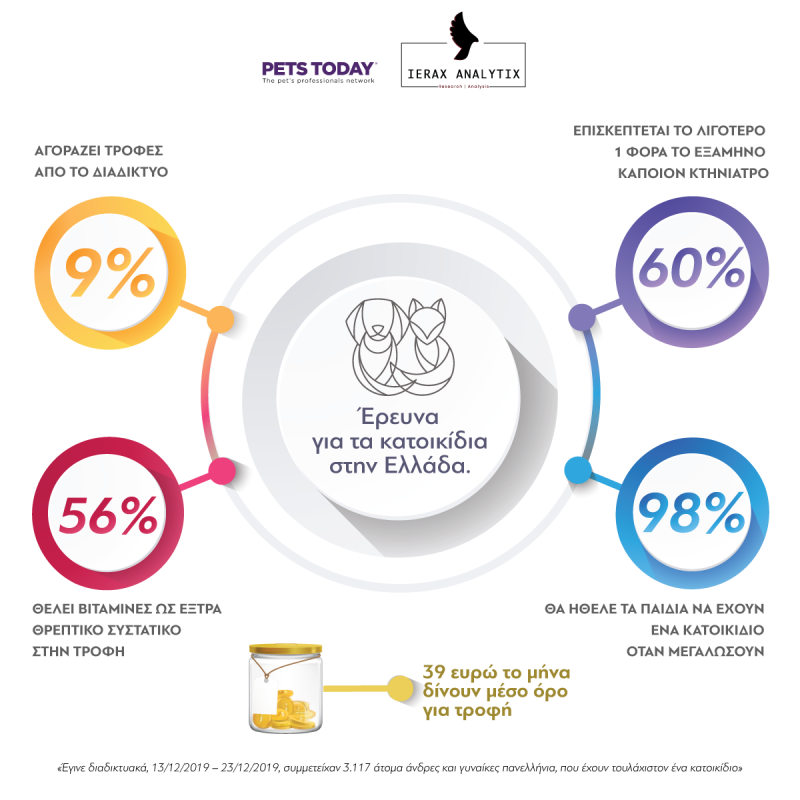 Η ierax analytix μαζί με την Pets Today Trade Exhibition & Magazine, διενήργησαν μια ξεχωριστή έρευνα αγοράς σε περισσότερους από 3.000 κηδεμόνες ζώων συντροφιάς, με στόχο να μελετήσουν τη συμπεριφορά και τις απόψεις τους γύρω από τα κατοικίδια.