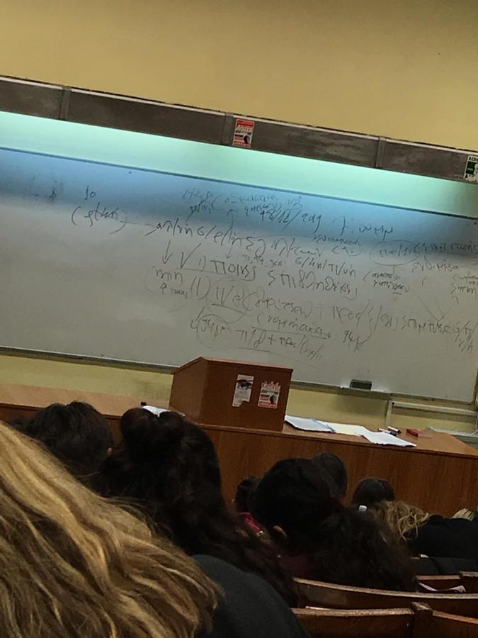 Μία από τις πιο δημοφιλείς αναρτήσεις είναι της Μαριαλένας που παρατηρεί ότι «με την εξ αποστάσεως διδασκαλία στερούμαστε αυτά τα τόσο σαφή, ξεκάθαρα και κατατοπιστικά σχεδιαγράμματα». Το σχόλιο συνοδεύεται από φωτογραφία όπου τα γράμματα του καθηγητή στον πίνακα παραπέμπουν -κατά τα στερεότυπα- σε… ιατρική συνταγή.