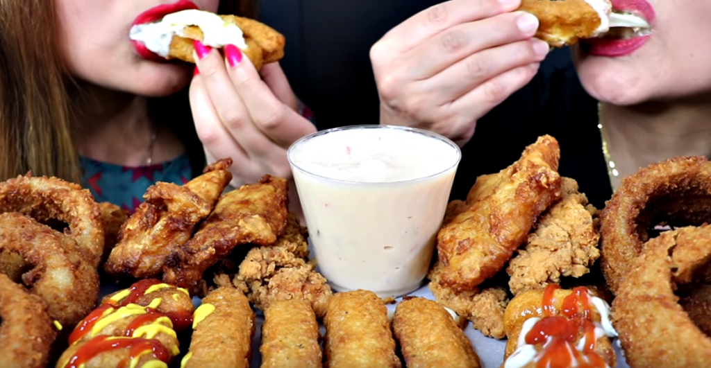 Αυτό που είναι σχετικά νέο ως τάση, είναι η μανία του φαγητού στο πεδίο του asmr. Ολοένα και περισσότερο ξεφυτρώνουν “βουλιμικά” βίντεο στο Youtube παίζοντας ουσιαστικά με τον εθισμό του σύγχρονου ανθρώπου στις “αμαρτωλές” τραγανές και ζουμερές junk food απολαύσεις.