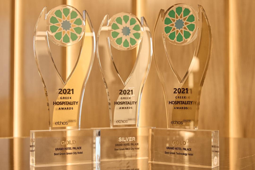 Για 5η συνεχή χρονιά το ξενοδοχείο Grand Hotel Palace διακρίθηκε με 3 σημαντικά βραβεία στον Πανελλήνιο διαγωνισμό των «GREEK HOSPITALITY AWARDS» 2021, ο οποίος τελεί υπό την αιγίδα του Υπουργείου Τουρισμού. Ο συγκεκριμένος θεσμός επιβραβεύει την αριστεία στο χώρο των ελληνικών ξενοδοχείων, επιβεβαιώνοντας τη συνεχιζόμενη επενδυτική πορεία για ανάπτυξη και εξέλιξη στον ξενοδοχειακό χώρο.