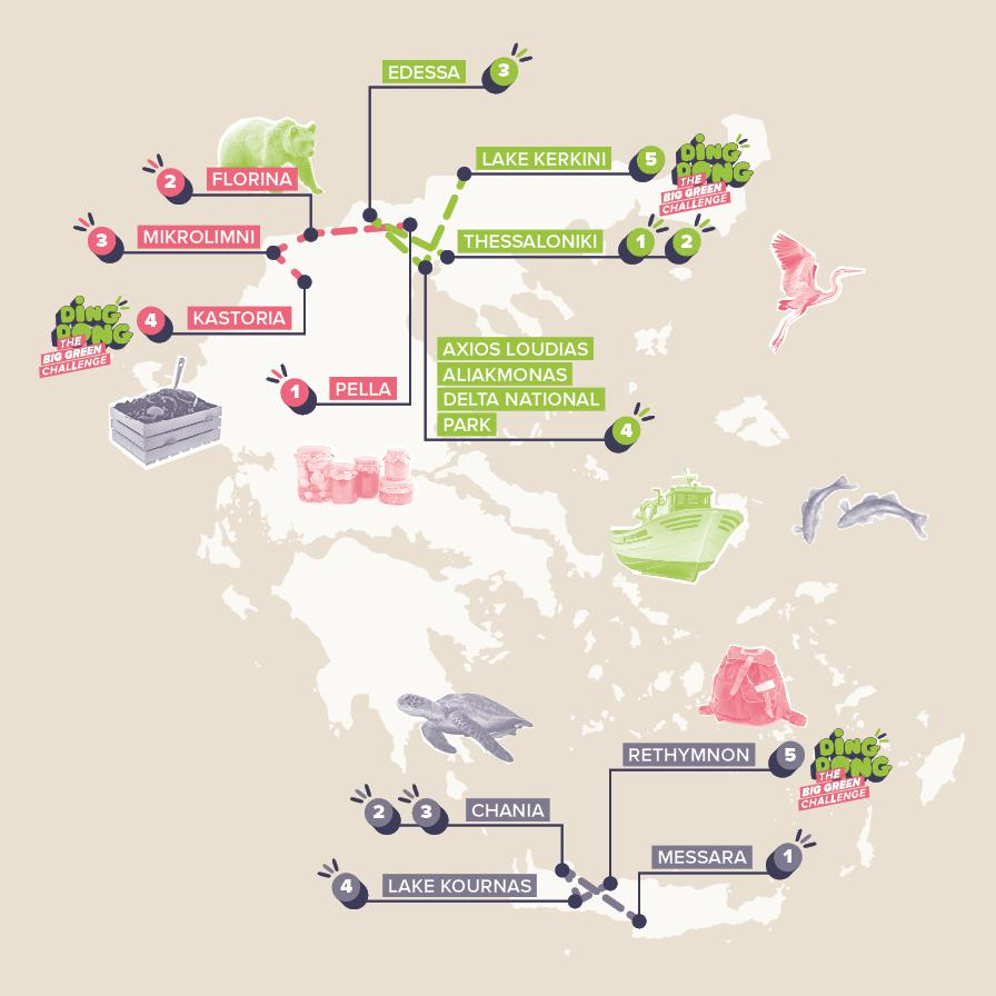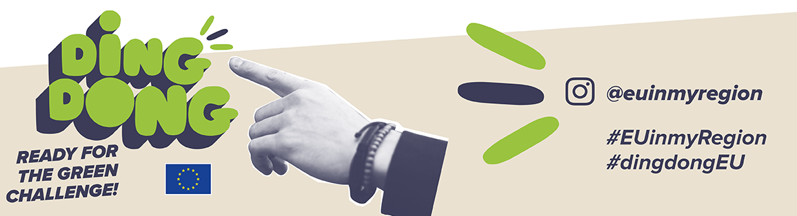 «Ding-Dong» είναι ο ήχος που ακούγεται όταν κάποιος χτυπάει το κουδούνι της πόρτας σας, κι αυτό ακριβώς θα κάνουν οι influencers στο ταξίδι τους #DingDongEU. Στην Ελλάδα οι influencers Άγγελος, Αλεξάνδρα και Ευτυχία θα διασχίσουν τη χώρα και θα χτυπήσουν την πόρτα διαφόρων τοπικών αειφόρων έργων και πράσινων πρεσβευτών για να εμπνευστούν από τις φιλικές προς το κλίμα δράσεις τους. Οι ακόλουθοί τους καλούνται να συμμετάσχουν σε διάφορες περιπέτειες και να προωθήσουν πρωτοποριακές πράσινες πρωτοβουλίες μαζί με τους influencers. Το ταξίδι κάθε influencer κορυφώνεται με τη διοργάνωση ενός Big Green Challenge, το οποίο αναδεικνύει μια συγκεκριμένη αειφόρο πρωτοβουλία που κατέστη δυνατή χάρη στην ΕΕ.