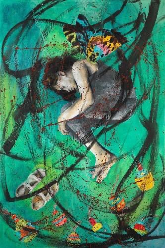 Τη στήλη συνοδεύει το έργο της ζωγράφου Xριστίνας Φοίτου, «Το όνειρο», Μικτή τεχνική σε καμβά, 150x100cm, 2017
