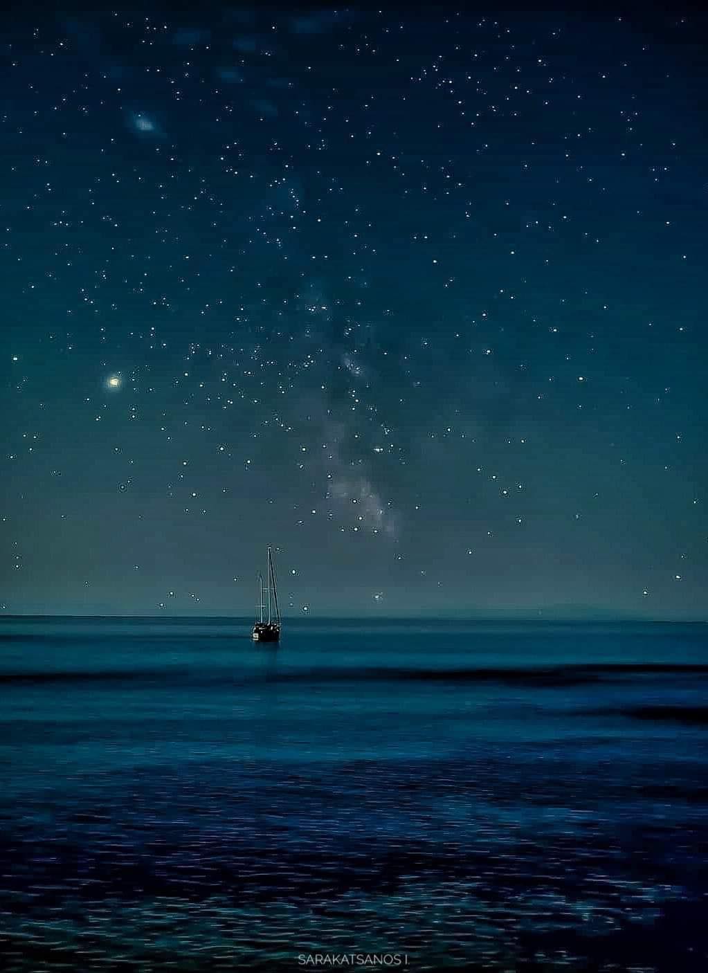 Η απόλυτη εικόνα αυτού του γαλήνιου νυχτερινού έναστρου θαλασσινού ορίζοντα καθηλώνει.