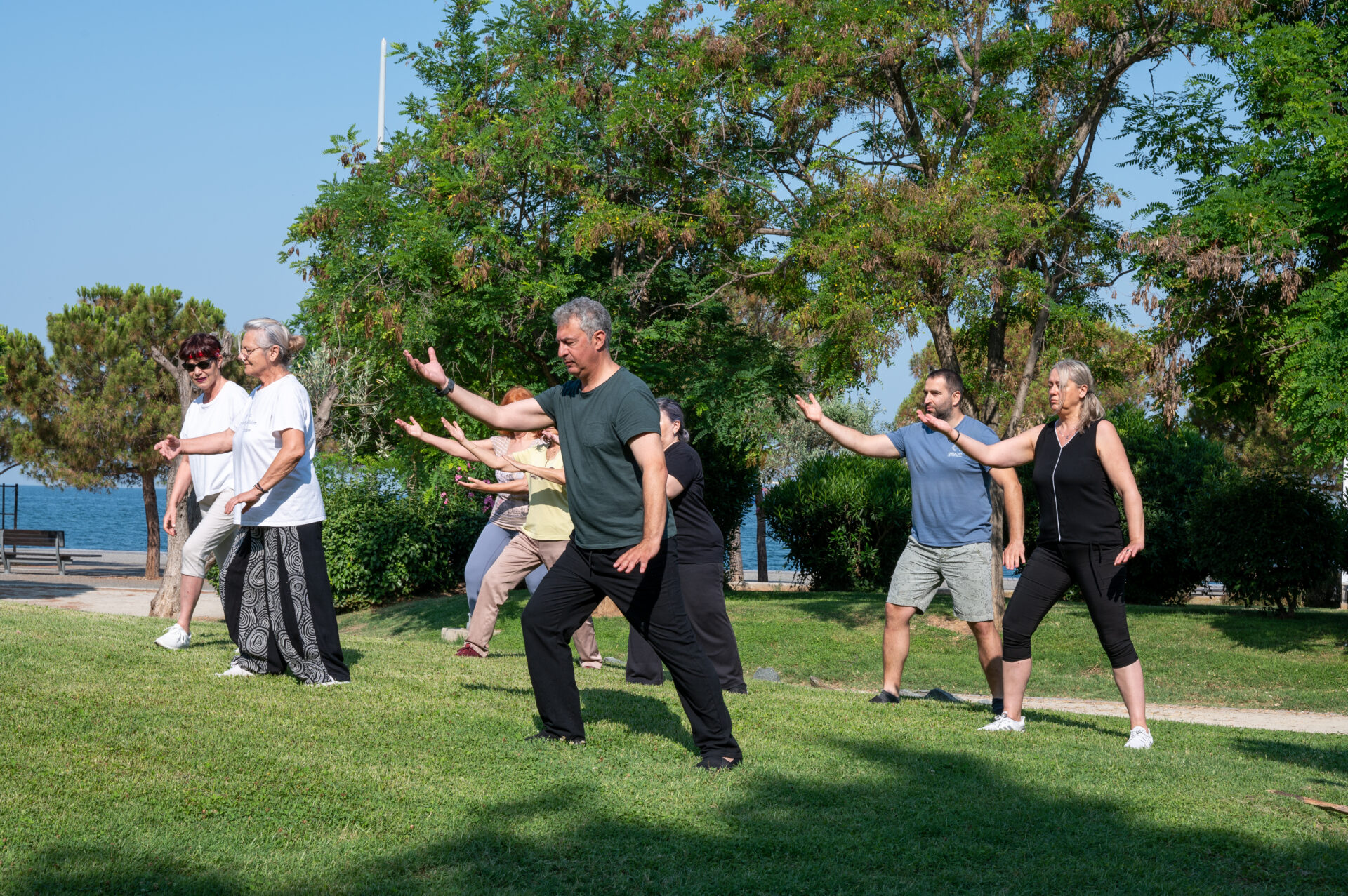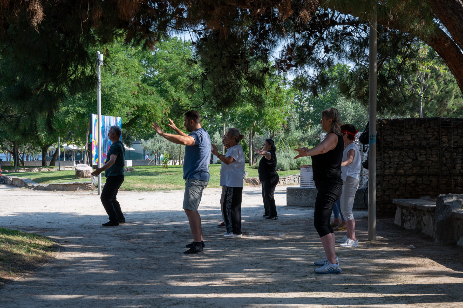 Ο Άρης Παπαγιαννόπουλος ασχολείται έντεκα χρόνια με το Τάι Τσι, συντονίζει μαθήματα σε χώρο της νέας παραλίας και βρίσκει ελκυστικό τον εξωτερικό χώρο: