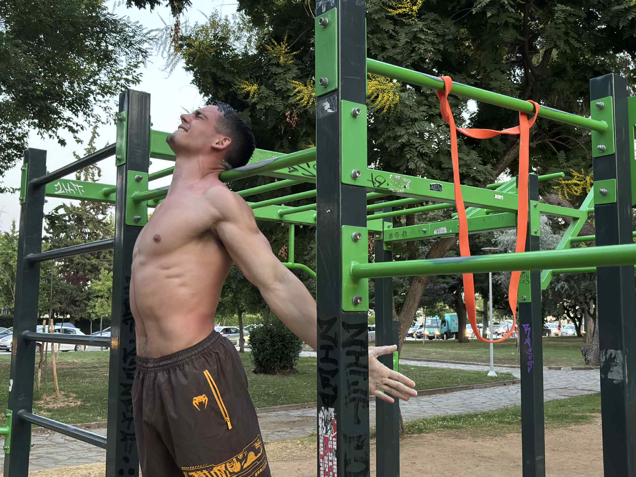 Όταν ο ήλιος πέφτει, τα αστικά πάρκα γεμίζουν ζωή. Μ’ ένα backpack στον ώμο, ο καθένας κουβαλά τα απαραίτητα για την προσωπική του “ιεροτελεστία” προπόνησης: στρώματα, πετσέτες, νερά. Στις γωνιές των πάρκων στήνονται μικρές κινητές γυμναστικές ζώνες. Προπονητές καθοδηγούν, ασκούμενοι ακολουθούν, κι οι περαστικοί κοντοστέκονται — παρατηρούν, εμπνέονται, ίσως και να δοκιμάσουν την επόμενη φορά.
