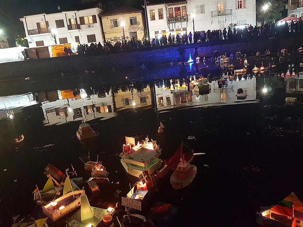 Τότε, έρχεται η ώρα, το καραβάκι να φωτιστεί με κεριά ή φωτάκια με μπαταρία και να πέσει στη λίμνη για να κάνει ένα μικρό ταξίδι μεταφέροντας πολύτιμα αισθήματα: