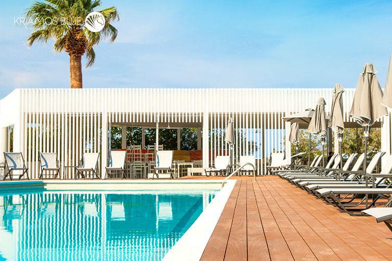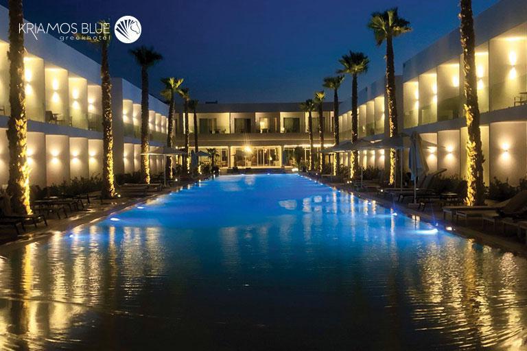 Προσφάτως ανακαινισμένο με πλακάκια και είδη υγιεινής με την εγγύηση της Porcelana, με μοντέρνο κι εντυπωσιακό σχεδιασμό, το Kriamos Blue Greek Hotel σας κάνει να νιώσετε σαν στο σπίτι σας. Τα χαρούμενα χρώματα στο σαλόνι του ξενοδοχείου και σε όλα τα υπνοδωμάτια δημιουργούν μια ευχάριστη ατμόσφαιρα κι ενισχύουν τη χαρά των διακοπών.