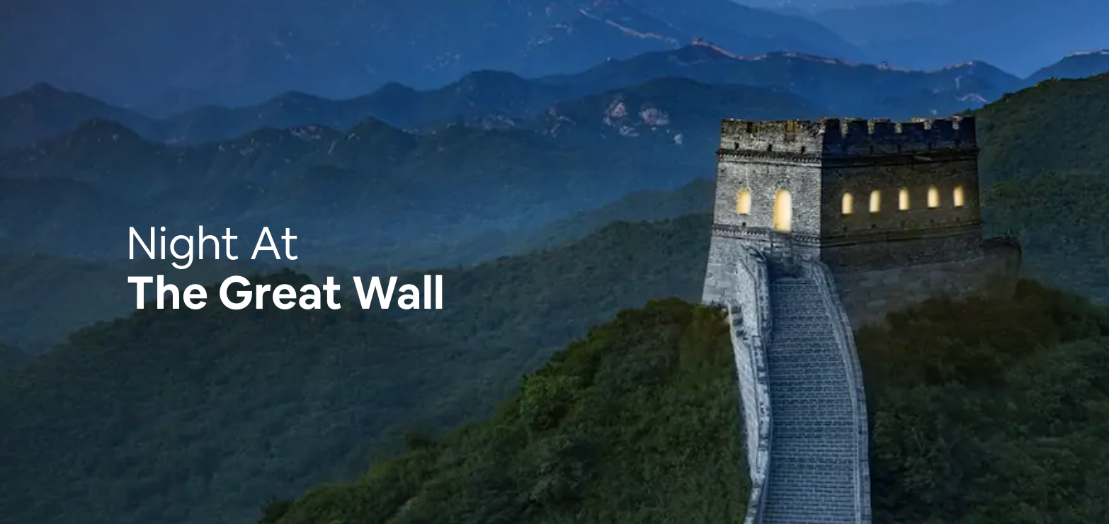 Σε ένα τμήμα του Τείχους έχει δημιουργηθεί μια κρεβατοκάμαρα, με θέα 360 μοιρών, προσφέροντας το καταλληλότερο σημείο για να αφεθεί κάποιος στη μαγεία του φεγγαριού και των άστρων. Το δειλινό, ο επισκέπτης θα παρακαθίσει σε γκουρμέ δείπνο με πολλά πιάτα, κάθε ένα εκ των οποίων αντιπροσωπεύει και μία από τις πολλές συνιστώσες της κινεζικής κουλτούρας. Με την ανατολή του ήλιου, ο τυχερός θα έχει τη δυνατότητα να περιπλανηθεί στην εξοχή και να κάνει μια περιήγηση στο ίδιο το Τείχος, ακούγοντας από το στόμα των επίσημων ιστορικών επεξήγηση της κληρονομιάς του, της ιστορίας του και της λειτουργίας του ως μέτρου προστασίας από τις εισβολές από τον Βορρά. Θα μπορεί, επιπλέον, να πάρει μια γεύση της κινεζικής τέχνης χάραξης σφραγίδων και της κινεζικής καλλιγραφίας.