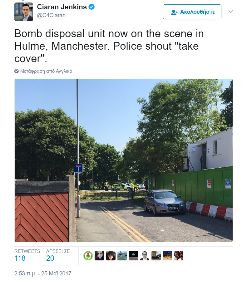 Η αστυνομία του Μάντσεστερ ανακοίνωσε ότι μονάδα πυροτεχνουργών έφθασε στο κολέγιο του Τράφορντ.