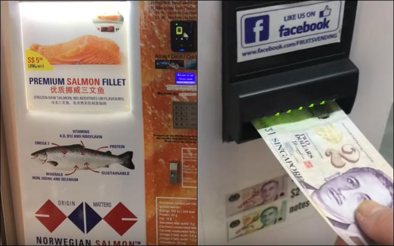 Τον περασμένο Ιανουάριο, στο mall Wisteria στη Σιγκαπούρη εμφανίστηκε ένα καινούργιου τύπου ATM: σε αυτό μπορείτε να κάνετε ανάληψη όχι χρημάτων, αλλά φιλέτων κατεψυγμένου σολομού από τα νορβηγικά φιορδ, βάρους 200 γραμμαρίων το καθένα.