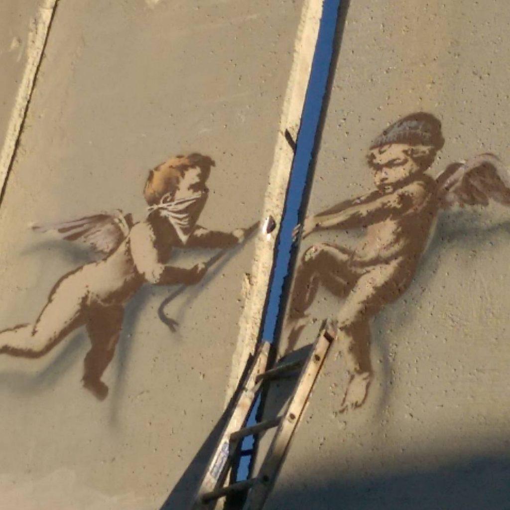 Το δεύτερο έργο του Banksy είναι δύο άγγελοι, φιλοτεχνημένοι με στένσιλ, οι οποίοι κρατούν έναν λοστό και προσπαθούν να διαπεράσουν το τείχος. Το έργο αυτό είχε φιλοτεχνηθεί λίγες εβδομάδες νωρίτερα, και ήταν καλυμμένο με ένα πανό το οποίο ανήγγειλε το γεγονός.