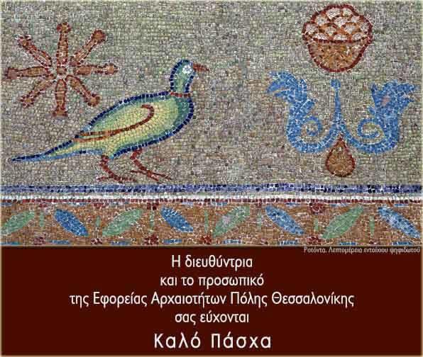 Μια πολύχρωμη λεπτομέρεια εντοίχιου ψηφιδωτού από τη Ροτόντα (από τη διευθύντρια και το προσωπικό της Εφορείας Αρχαιοτήτων πόλης Θεσσαλονίκης) και την εξαιρετική φωτογραφία (του σύγχρονου Πολωνού φωτογράφου Tomas Moscicki με τίτλο “Κόκκινα αυγά” από την Ιερά μονή Κουτλουμουσίου του Αγίου Όρους, όπως παρουσιάστηκε πρόσφατα σε έκθεση φωτογραφίας, η οποία παρουσιάστηκε τον περασμένο Ιανουάριο στο συμβούλιο της Ευρώπης στο Στρασβούργο) με ευχές από την Αγιορείτικη Εστία για Καλή Ανάσταση και Χρόνια Πολλά!