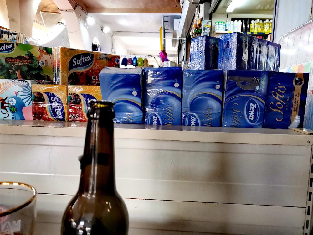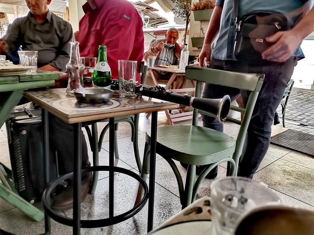 ”Το ξεχωρίζω και μου αρέσει γι’ αυτό αυτό που θα σου πω, επειδή μπορεί σε κάποιον που περπατάει να φαίνεται ξέρεις αντιφατικό ή παράξενο και να σκέφτεται που θα πάω να φάω εκεί μέσα, εδώ είναι αγορά, πουλάνε απορρυπαντικά, αλουμινόχαρτα, ελιές, κοτόπουλα, εδώ πιο κάτω έχει ψαράδικο. Ε μέσα σε όλα αυτά τα είδη που σχετίζονται με το τραπέζι, το μαγείρεμα το φαγητό, δεν κολλάει να έχει και ένα μεζεδοπωλείο. Σαν να βλέπεις την τελική φάση των εμπορευμάτων και το πού καταλήγουν. Βέβαια παραδίπλα έχει και κι ένα μαγαζί με εικόνες, οκ έχει κι αυτό τη γοητεία του. Ξέρεις αυτό είναι και το γοητευτικό σε όλο αυτό, η αντίφαση των καταστάσεων. Δίπλα οι άνθρωποι εργάζονται, τρέχουν και το μεροκάματο το ψωμί και εδώ σε εμάς, δίπλα σε αυτούς, έρχονται άνθρωποι, να πιουν, να χαλαρώσουν, να περάσουν καλά.”