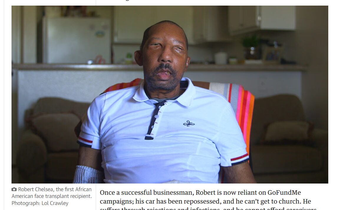 Κάποτε επιτυχημένος επιχειρηματίας, ο Ρόμπερτ βασίζεται πλέον σε καμπάνιες GoFundMe· το αυτοκίνητό του έχει κατασχεθεί και δεν μπορεί να πάει στην εκκλησία. Υποφέρει από επεισόδια απόρριψης και λοιμώξεων, και δεν έχει χρήματα για φροντιστές. Μερικές φορές εξασθενεί τόσο πολύ που δεν μπορεί ούτε ασθενοφόρο να καλέσει. Κι αν το καλούσε, θα ήταν ένα επιπλέον κόστος που επίσης δεν μπορεί να αντέξει. Η μετεγχειρητική φροντίδα είναι το μεγαλύτερο ζήτημα για τους λήπτες μεταμόσχευσης προσώπου στις ΗΠΑ. Κι όμως, η μελέτη του JAMA μέτρησε μόνο την επιβίωση του μοσχεύματος – όχι αν οι ασθενείς μπορούσαν να εργαστούν, να αντέξουν οικονομικά τα φάρμακά τους, να διατηρήσουν σχέσεις. Δεν κατέγραψε οικονομική καταστροφή, ψυχική υγεία ή ποιότητα ζωής. Κατέγραψε δέκα θανάτους, αλλά όχι πώς πέθαναν ή πώς ήταν τα τελευταία τους χρόνια.
