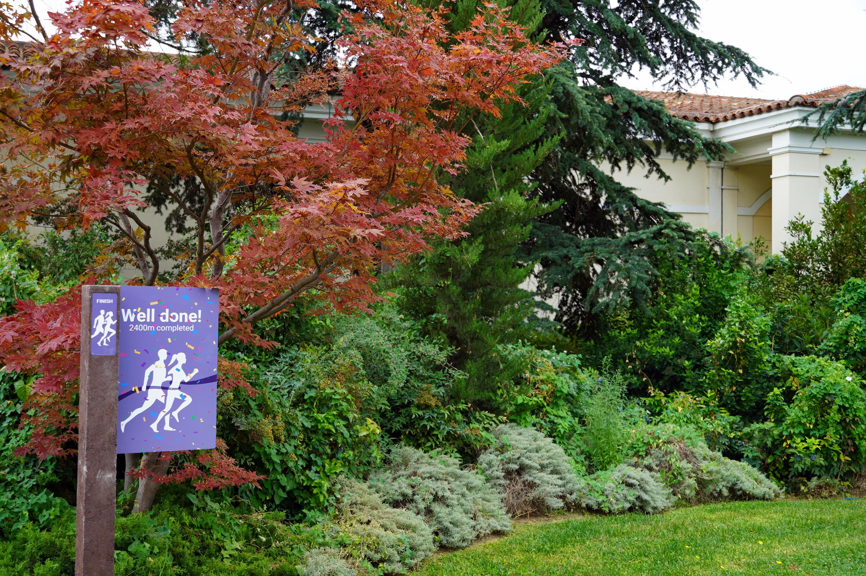 Διαμένοντες στο ξενοδοχείο αλλά και επισκέπτες μπορούν τώρα να απολαύσουν αυτήν την όμορφη βόλτα η οποία εκθειάζει τους μοναδικούς κήπους του ξενοδοχείου και δίνει την δυνατότητα, για άσκηση σε εξωτερικό χώρο ενεργοποιώντας τον μεταβολισμό και δυναμώνοντας το σώμα σου ενώ παράλληλα αποτελεί μοναδικό τρόπο διαλογισμού. Μια διαδρομή εμπλουτισμένη, από κατάφυτες αλέες με λογής λογής δέντρα και φυτά, από ανοιχτούς χώρους με γρασίδι, από τον εντυπωσιακό καταρράκτη καθώς και ανάμεσα στα όμορφα κτήρια, η οποία θα σε γοητεύσει και θα την αναζητάς κάθε εβδομάδα.