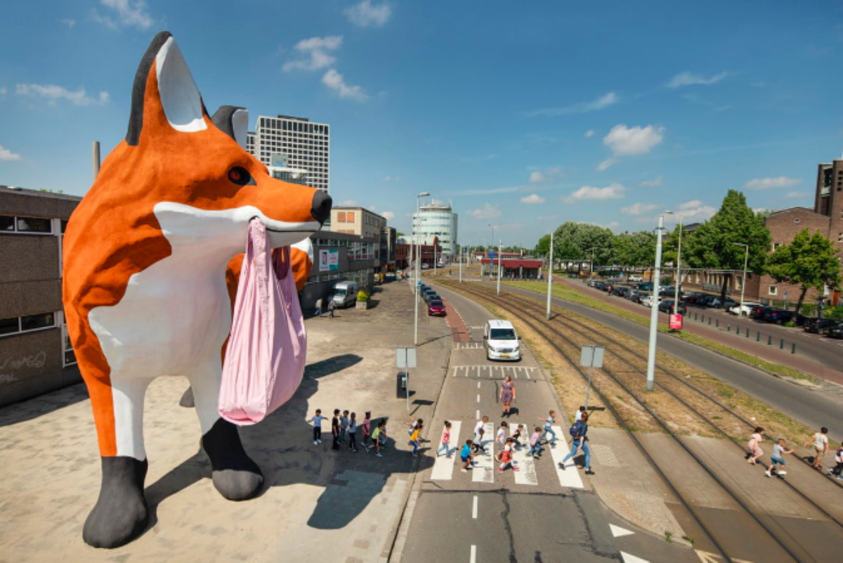 Συχνά, οι κάτοικοι της συνοικίας Bospolder-Tussendijken στο Ρότερνταμ της Ολλανδίας εντοπίζουν αλεπούδες να περιφέρονται στους δρόμους τη νύχτα. Τώρα, ο Ολλανδός καλλιτέχνης Florentijn Hofman έδωσε σε μία από αυτές ένα μόνιμο σπίτι: εγκατέστησε την «Bospolder Fox», με μια ροζ πλαστική σακούλα στα σαγόνια της, να εποπτεύει ένα πολυσύχναστο σταυροδρόμι της συνοικίας. Και μοιάζει να ρωτά: «Κάτι έχει κλέψει; Μαζεύει τα σκουπίδια; Ή, μόλις επέστρεψε από ένα αγοραστικό ξεφάντωμα;»