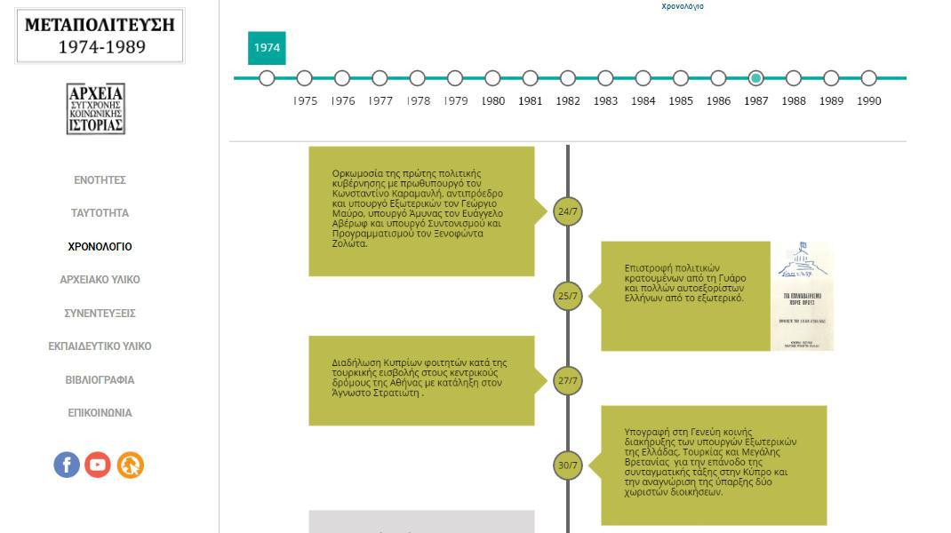 Μια ενδιαφέρουσα διαδικτυακή σελίδα, έργο επιστημόνων, αφιερωμένη στην περίοδο, καταγράφει, αποδομεί και αναλύει τα γεγονότα από το 1974 μέχρι το 1989.