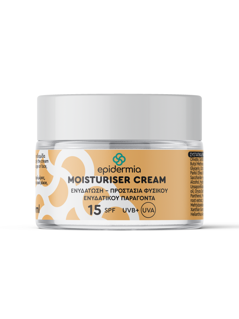 Μoisturiser Cream, 15 SPF: Με τη δύναμη του Eλίχρυσου, προσφέρει εξαιρετική ενυδάτωση και προστασία στην επιδερμίδα. Θρέφει και αναζωογονεί το δέρμα, διατηρώντας το υγιές και λαμπερό. Προσφέρει ολοκληρωμένη φροντίδα και προστασία από την ηλιακή ακτινοβολία.