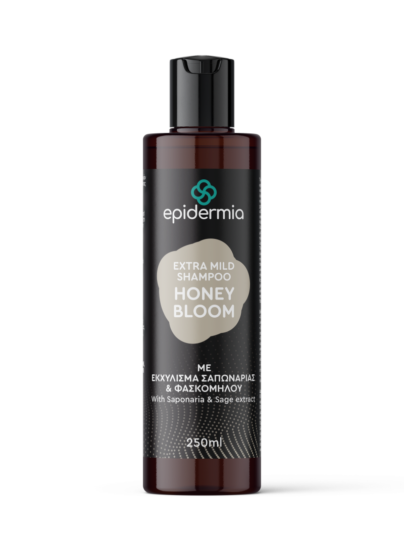 Extra Mild Shampoo Honey Bloom, κατά της λιπαρότητας: Εμπλουτισμένο με εκχύλισμα σαπωνάριας και φασκόμηλου για τόνωση και αναζωογόνηση, καταπραΰνει και μειώνει την εμφάνιση λιπαρότητας, προστατεύοντας παράλληλα από ερεθισμούς. Κατάλληλο για καθημερινή χρήση, κάθε τύπο μαλλιών κι επιδερμίδας.