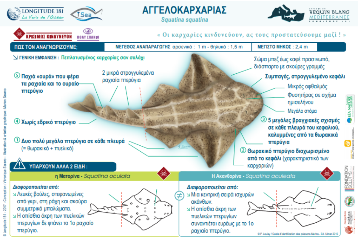 Ο εικονιζόμενος καρχαρίας είναι ένας Aγγελοκαρχαρίας. Οι Αγγελοκαρχαρίες, ή αλλιώς Ρίνες, είναι πεπλατυσμένοι καρχαρίες που αποτελούν μια από τις πιο απειλούμενες ομάδες καρχαριών στο κόσμο. Στη Μεσόγειο εντοπίζονται 3 είδη (Ακανθορίνα, Ματορίνα και Αγγελοκαρχαρίας), με τους μεσογειακούς πληθυσμούς τους να έχουν χαρακτηριστεί Κρισίμως Κινδινεύοντες από τη Διεθνή Ένωση Προστασίας της Φύσης (IUCN) λόγο της ραγδαίας μείωσης τους και τοπικών εξαφανίσεων σε διάφορα σημεία της Μεσογείου. Οι κύριες απειλές τους είναι η παρεμπίπτουσα αλιεία από τράτες, δίχτυα και παραγάδια βυθού καθώς και η συνολική υποβάθμιση των ενδιαιτημάτων τους.