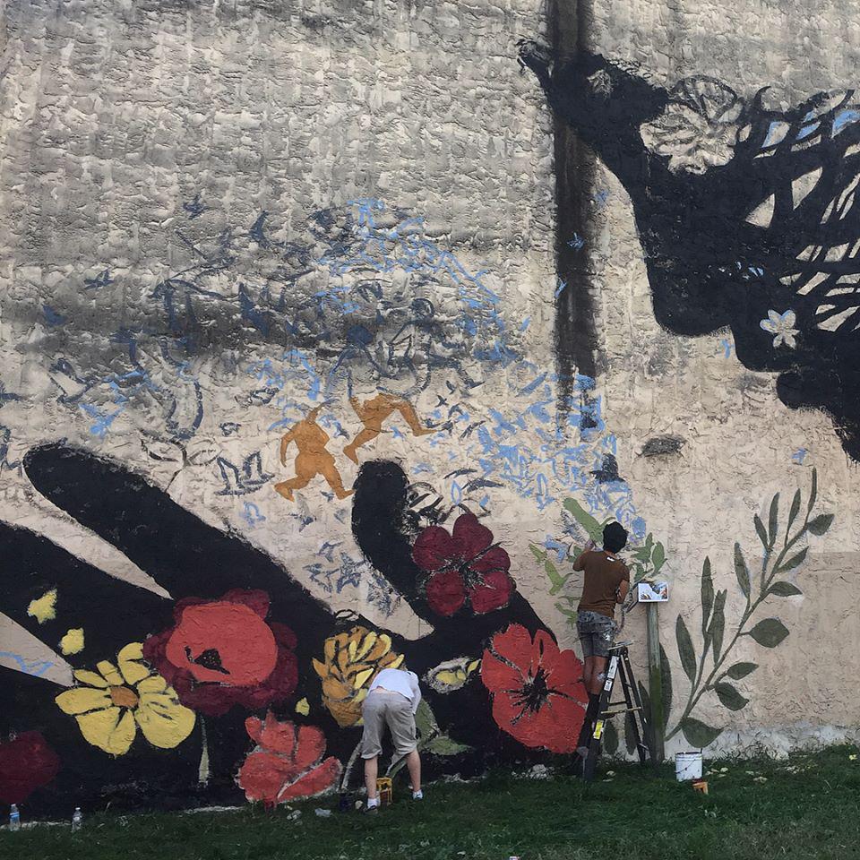 «Μια κόρη μεταναστεύει προς τη Μητέρα Γη». Αυτός είναι ο τίτλος που έδωσε στην τοιχογραφία της, στη Φιλαδέλφεια των ΗΠΑ, η Τζες Σνόου (Jess X. Snow). Δυο αφηρημένες φιγούρες, κρατώντας απ’ το χέρι μια τρίτη, ένα μικρό κοριτσάκι, αναπηδούν από το χέρι της Μητέρας Γης και τρέχουν προς το «πρόσωπό» της. Της Μητέρας Γης, που η δική της μορφή είναι από κλαδιά, φύλλα, λουλούδια και πουλιά που πετούν.