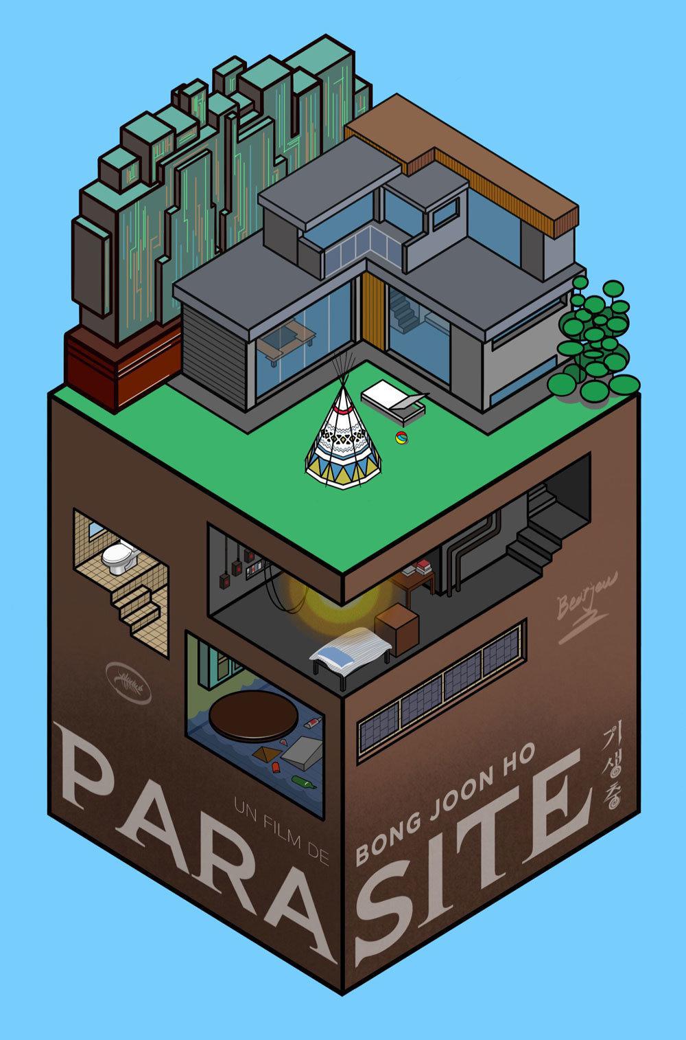 Η Καναδή Marie Bergeron σχεδίασε την παρακάτω αφίσα που εστιάζει στην αρχιτεκτονική πλευρά της ταινίας, αναδεικύοντας ταυτόχρονα την ταξική διαφορά ανάμεσα στις δύο οικογένειες.