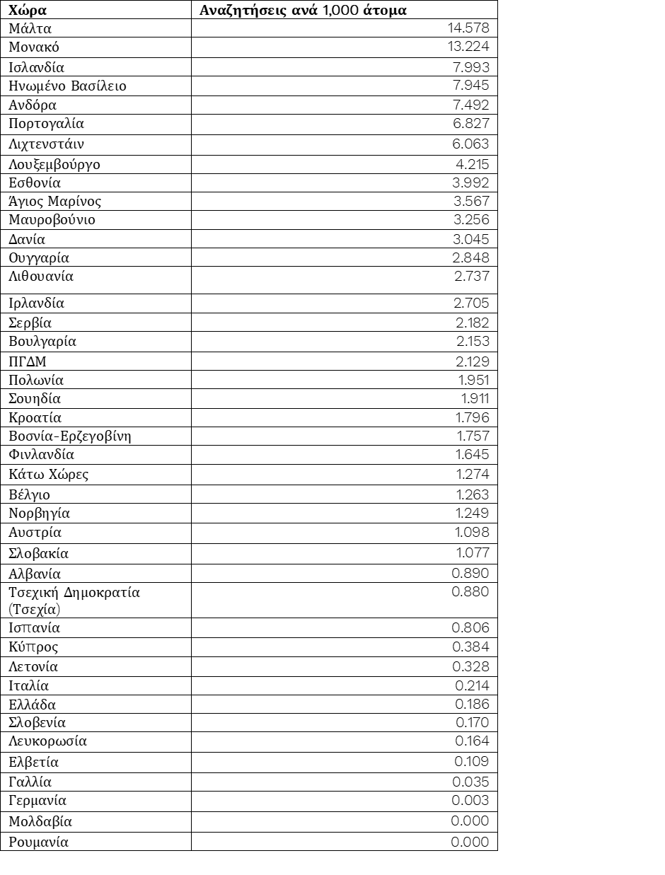 Εξετάζοντας την Ευρώπη, οι χώρες που αναζητούν τα περισσότερα βήματα και συμβουλές για παράλληλο παρκάρισμα ανά 1.000 κατοίκους, και επομένως είναι οι πιο ανήσυχες για τον συγκεκριμένο ελιγμό, είναι οι εξής: