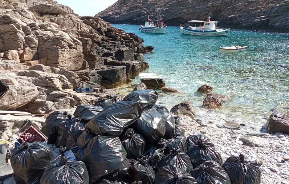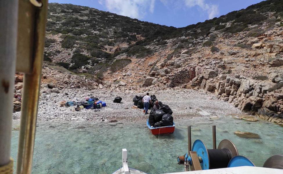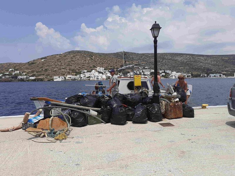 Όπως μου λέει ο κ. Μιχάλης Κρόσμαν, επαγγελματίας ψαράς εδώ και 40 χρόνια και κάτοικος Αμοργού, ο ίδιος και οι συνάδελφοί του μεταβαίνουν στις ακτές του νησιού προκειμένου να συλλέξουν τα απορρίμματα.