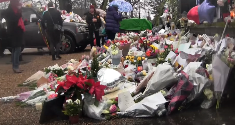 Αναμνηστικά αφήνουν οι θαυμαστές και έξω από την κατοικία του στο Γκόρινγκ σε απόσταση 80 χιλιομέτρων από το Λονδίνο εκεί όπου πέθανε.