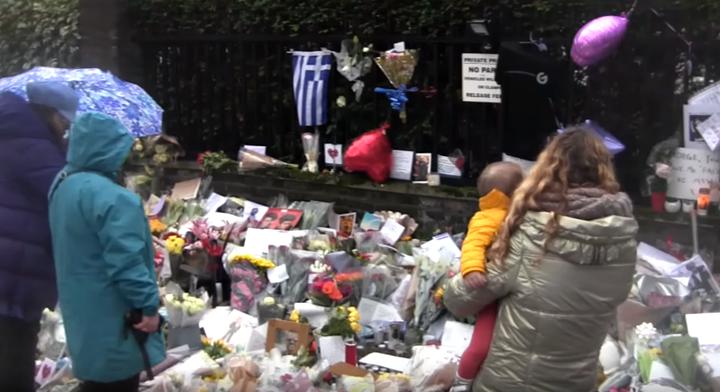 Μία έκταση πρασίνου απέναντι από το σπίτι του ποπ σταρ Τζορτζ Μάικλ στο Λονδίνο είναι καλυμμένη από κεριά, σημαίες και χειρόγραφα μηνύματα για τον τραγουδιστή, ο οποίος πέθανε τον Δεκέμβριο του 2016.