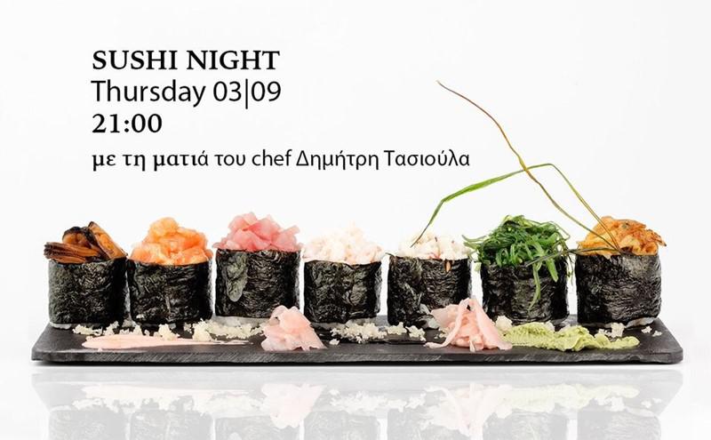 O σεφ Δημήτρης Τασιούλας μαζί με την ομάδα του Thria σε προσκαλούν απόψε σε ένα γευστικό ταξίδι στην Ιαπωνική κουζίνα, βάζοντας τη δική τους πινελιά σε κλασικά πιάτα sushi. Οι επιλογές εξαιρετικά ενδιαφέρουσες: ποικιλία sashimi, Maki Rolls, HOSOMAKI, και Nigiri θα σε μυήσουν στις ιδιαίτερες γεύσεις της Απω Ανατολής, ενώ ως κυρίως πιάτο μπορείς να γευτείς Μαύρο Μπακαλιάρο de miso με κρέμα μελιτζάνας και χόρτα της θάλασσας .